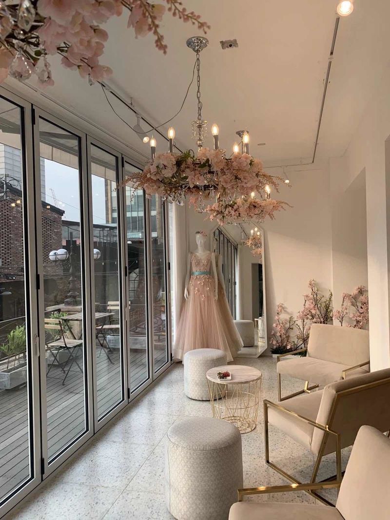 샵 내부 입니다. 드레스는 못찍게해서 못찍었어요~ 스타일 : 보통♥ 드레스 스타일은 다양한 거 같았지만 다양하지 않은 스타일만 자꾸 추천해주고 보여주더라고요. 샵은 전체적으로 깔끔하고 고급스러웠어요. 옷상태 : 보통♥ 옷 보관상태는 나쁘지 않았습니다. 다양한 드레스를 보지 못해서 드레스 상태가 좋은지 안 좋은지도 잘 모르겠네요. 4가지 드레스를 같은 스타일로 추천만 주구장창해주고, 다른스타일로 보여달라고해도 보여주지를 않습니다. 이해할수없습니다. 서비스 : 직원 친절도가 최하입니다. 불친절에다가 신부에게 어울리는 드레스를 추천하는 능력이 최악입니다. 또한, 다른스타일을 보여달라고 해도 계속 같은 스타일만 고집해서 보여주고 같이 온 드레스를 보러 온 들러리들의 기분을 전혀 생각지 않는거 같았습니다. 워낙 바쁜샵이라 그런지 별로 신경써주지도 않고, 아무튼 저는 패스입니다.