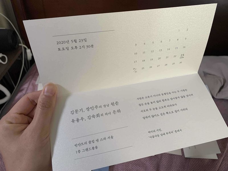 주위에 결혼한 친구들도 많은데, 그중 정말 한 친구 청첩장이 눈에 띄더라구요..! 그이후 제가 결혼 준비 하게 되면서 물어보니 신시얼리 청첩장이라 하여 바로 요기서 진행해야겠다.. 하고 샘플 받아봣어용😍 첨부터 이미 답정으로 셀렉한 청첩장이 있는데 다른 청첩장도 구경하고 싶어 시켜봤어요:) 가로청첩장을 선호 했는데 확실히 다른데 찾아봐듀 가로청첩장이 신시얼리만큼의 퀄리티가 올라오는 집이 없더라구요! ㅠㅠ 이번주 시안 1차 넘길 예정인데 언능 받아보고싶네용:) 디자인 : 추천♥ 다른 디자인은 아무리 봐도 눈에 안차는데, 신시얼리 디자인은 너무 맘에 들어라구요! 샘플 포장된 패키지마저도 고급고급 .. ㅠㅠㅠ 아까워서 보관중이네요 가격 : 추천♥ 가격은 타 업체에 비해 좀 있는 편이지만, 청첩장의 종이 중량감 부터 다르기땜에 그만큼 고급스러워 보여요! 가격만큼 고급스러운 느낌이 물씬 풍기는 아이입니당 :) 서비스 : 추천♥ 빠르게 샘플이 보내줘서 좋더라구요! 애초에 사실 답정으로 찍어놓고 이거 해야지 했던 디자인이 있었는데 걍 하기전에 겸사겸사 다른것도 좀 보자 하고 받아봣어요:) 언능 주문 하고 빨리 수령하고싶네용 ㅎㅎ