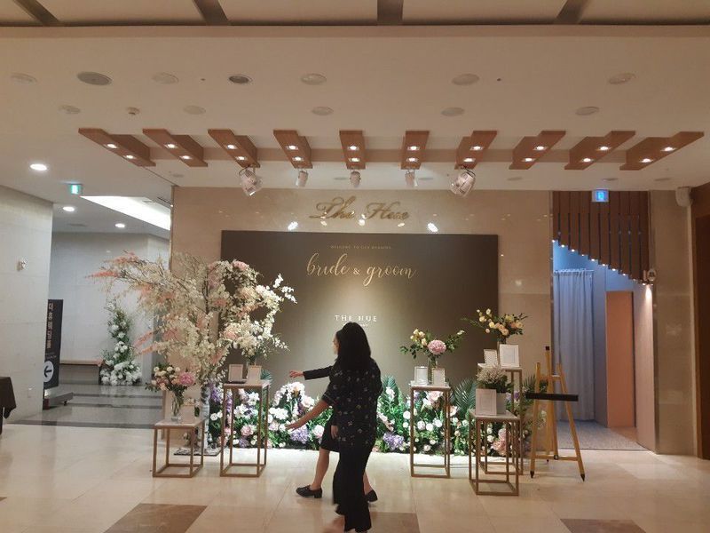 즐겁게 홀투어했습니다! ㅎㅎ 홀도 이쁘고 딱 제스타일이었어요 꽃장식이 많아서 좋았습니다 버진로드 길이도 딱 좋았고 소규모웨딩에 적합해서 전 좋았어요 홀분위기 : 추천♥ 적은 하객 200분정도 모실예정이어서 일부러 작은홀로알아봤습니다 홀도 아기자기하고 꽃향기가 로비부터 확퍼지길래 너무좋았습니다 신부대기실은 좀 좁았지만 ㅠ 그래도 뒤의 꽃 아치가 이뻤어요~ 음식 : 메뉴는 뷔페였어요 거기가 갈비탕 무한리필~ 다만 음식 호불호가 많이 갈리는곳인거 같아요 ㅠ ㅠ.. 그것만아니었다면 선택했을거같아요 서비스 : 추천♥ 정말 친절하셨어요 홀구석구석 다 알려주시고 ㅎㅎ 좋았습니다~ 편하게 홀투어잘했어요