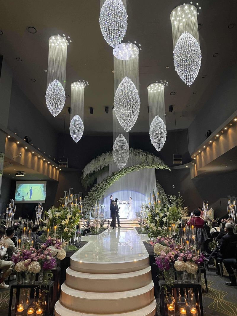 로비는 넓적한 편은 아닌데 층고가 높아 눈이 확 트인 느낌입니다. jk는 총 3개홀인데 저희는 보증인원이 적어 제일 큰 홀은 아예 보여주지도 않았고 아트리움홀과 엠버루체홀만 봤습니다. 두 홀은 다 층고가 11m여서 웅장합니다. 아트리움홀은 약간 뮤지컬느낌이고 천장에 은하수 같은 조명이고 신부입장시 리프트타고 내려올수 있습니다. 엠버루체홀은 화이트에 푸릇푸릇 느낌이고 아트리움홀보다 조금 작습니다. 여기는 특이하게 입장이 신랑 신부가 양옆으로 나오는 설정입니다. 이건 호불호가 가릴것 같습니다. 엠버루체홀은 다른 두홀과 다른 방향에 있어서 조금 덜 번잡한 느낌을 받았어요, 홀분위기 : 추천♥ 건물 자체는 별로였으나 4층에 올라가면 입구부터 층고가 엄청 높아 내부는 화려하였습니다. 음식 : 추천♥ 음식은 한번 둘러봤는데 잘 나오는편인 것 같습니다. 서비스 : 보통♥ 예약실이 좁아서 미리 예약하고 상담하는것도 20분쯤 대기했어요, 그리고 저희뿐만 아니라 다른커플도 대기하고 있더라구요, 대기시 자릿수도 부족해서 이 부분은 좀 보완하셔야 할것 같습니다.