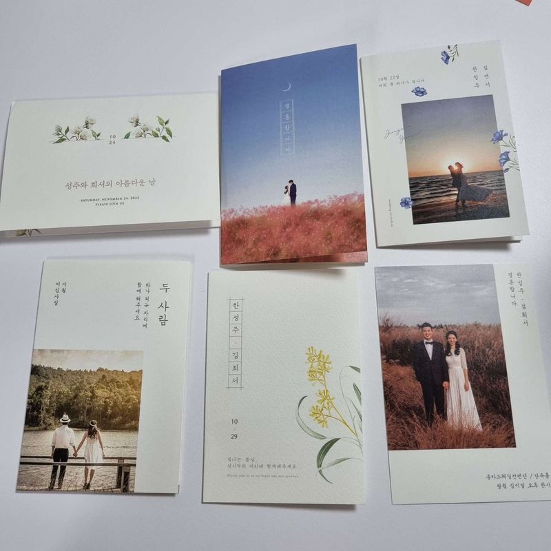 요즘은 종이보다는 모바일로 주는경우가 더 많다보니 모바일 청첩장 디자인도 비교해보게 되더라구요 제일 세련되고 깔끔해보였던 봄카드로 진행하게 되었고 향수라던지 프리미엄 퀄리티 뿜뿜이라 만족스럽습니다 디자인 : 추천♥ 아기자기하고 일러스트 분위기가 너무 예쁘고 사랑스러워요 전반적으로 일러스트가 많은것 같습니다 가격 : 추천♥ 종이질도 너무 좋았고 향수 냄새가 좋아서 확실히 고급스럽고 차별화되는 느낌이었어요 서비스 : 추천♥ 패킹부터 다른업체랑 다르게 봉투나 스티커 식권까지 샘플을 다 보내줘서 친절하고 신경을 많이 쓰는구나 느낌이 많이 들어서 선택했습니다