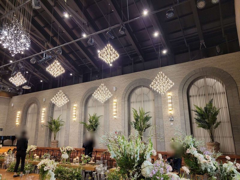 사진처럼 2층보다는 엄청 밝은 분위기의 홀이에요. 요즘에 어두운 컨벤션 홀을 많이들 하셔서, 저는 이런홀을 찾아헤맸는데요. 2층은 어두운 스타일의 모던홀이고 6층은 푸릇푸릇 하우스웨딩 느낌 물씬나는 밝은 웨딩홀입니다. 건물 전체가 웨딩홀이라 주차도 편하고요. 에스컬레이터나 엘레베이터 타시고 6층 올라오시면 저런 특이한 책장 포토 스팟도 있어요. 사진 찍고 계시는 다른 분들계셔서 구경하고 사진찍었는데 분위기 밝고 너무 이뻤어요. (식 진행할 땜 살짝 어둡게했다가 나중에 켭니다!) 웨딩드레스샵이랑 메이크업샵 한복샵이 모두 입점되어있어서 한 곳에서 다 대여하고 해결할 수 있어서 완전 편해요. 용인 사시는 분들은 페이지 웨딩 강추드립니다~~ 홀분위기 : 추천♥ 6층 클래식홀은 살짝 밝은 느낌으로 너무 어둡지 않아서 좋았어요. 리모델링 후에 샹들리에 수가 늘어나서 너무 이뻐요. 따스한 분위기에다가 커튼 뒤쪽에는 산뷰가 보여서 자연과 어울리는 느낌이에요 음식 : 추천♥ 뷔페이고 음식 종류가 매우 다양합니다. 음료 코너에 홍차 여러 종류 있는 곳은 처음이에요~~ 뷔페에 혼자 먹을 수 있는 1인석도 있어서 좋은 것 같아요. 맛도 괜찮습니다~~ 서비스 : 추천♥ 처음엔 평범하게 결혼하는게 싫어서 이것저것 되는지 여쭤봤는데 엄청 친절하게 안내해주셨어요~~ 일정 있을 때 마다 미리 연락 주시고 질문드리는 것에 너무 정성스레 대답해주셔서 감동이었습니당♡