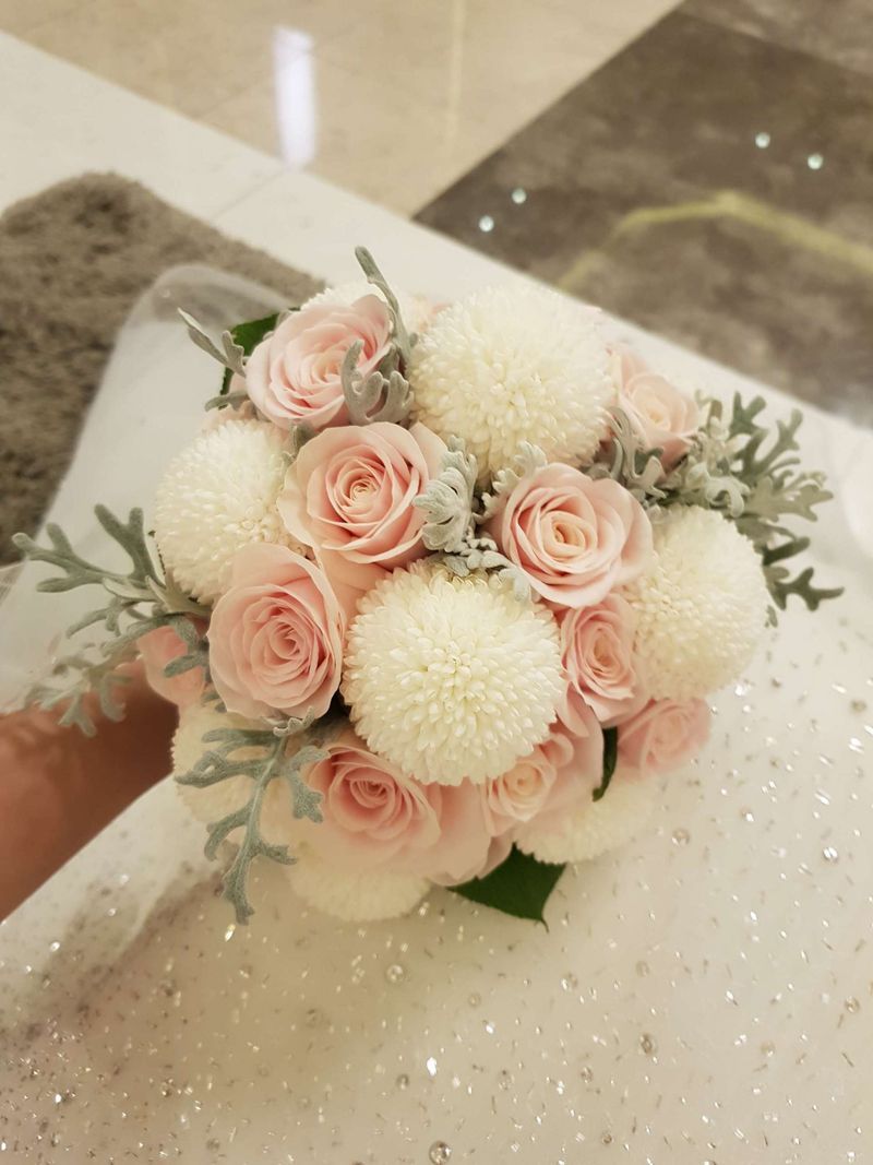 보자마자 반해서 부케에 돈쓰고 싶지않았는데 너무예뻤던 ㅎㅎㅎㅎㅎㅎ그래서 부르트퐁퐁 주문했는데 다들 부케 너무이뿐거 잘 골랐다고 해서 뿌듯했어요 ㅎㅎㅎ 연한핑크라 그런지 너무예뻐서 좋았어요 ㅎㅎㅎ 부케 : 추천♥ 부르트 퐁퐁 으로 구입했어요 퐁퐁꽃 하얀색에 연한핑크가 돋보였던 부케였어요 ㅎㅎ 홀 패키지로 이용해서 부케는 따로 시켰는데 ㅎㅎ이쁘고 신선하게 배달됐어요 ㅎㅎ 가격 : 추천♥ 부케알아보면 거의 20만원선 이더라구요 ㅜㅜ 웨딩홀도 똑같은거 20에 받구요 ㅜㅜ 하지만 여긴 웨딩북 포인트 받은걸로 포인트 써서 10만원초반에 구입했어요 ㅎㅎ 서비스 : 추천♥ 문자 결혼하기 1주일부터 연락주시고 확인 전화 주시고 7시에 메이크업실에서 받았는데 싱싱하게 물묻혀왔더라구요 ㅎㅎ