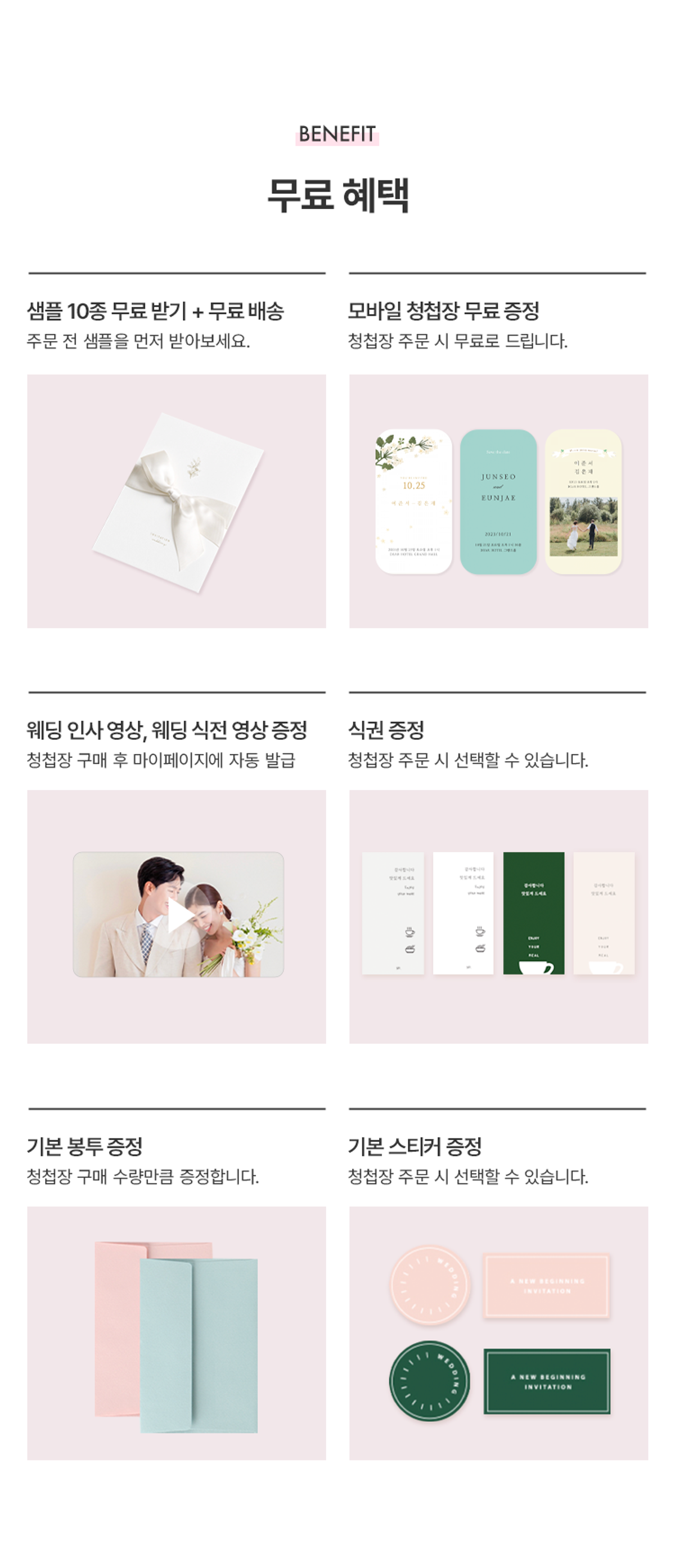 청첩장에는 인사말, 이름, 서열, 일시, 장소, 약도, 봉투내용 등이 인쇄되며, 초안 신청시 웹사이트에 준비된 양식대로 차곡차곡 입력해 주시면 됩니다.