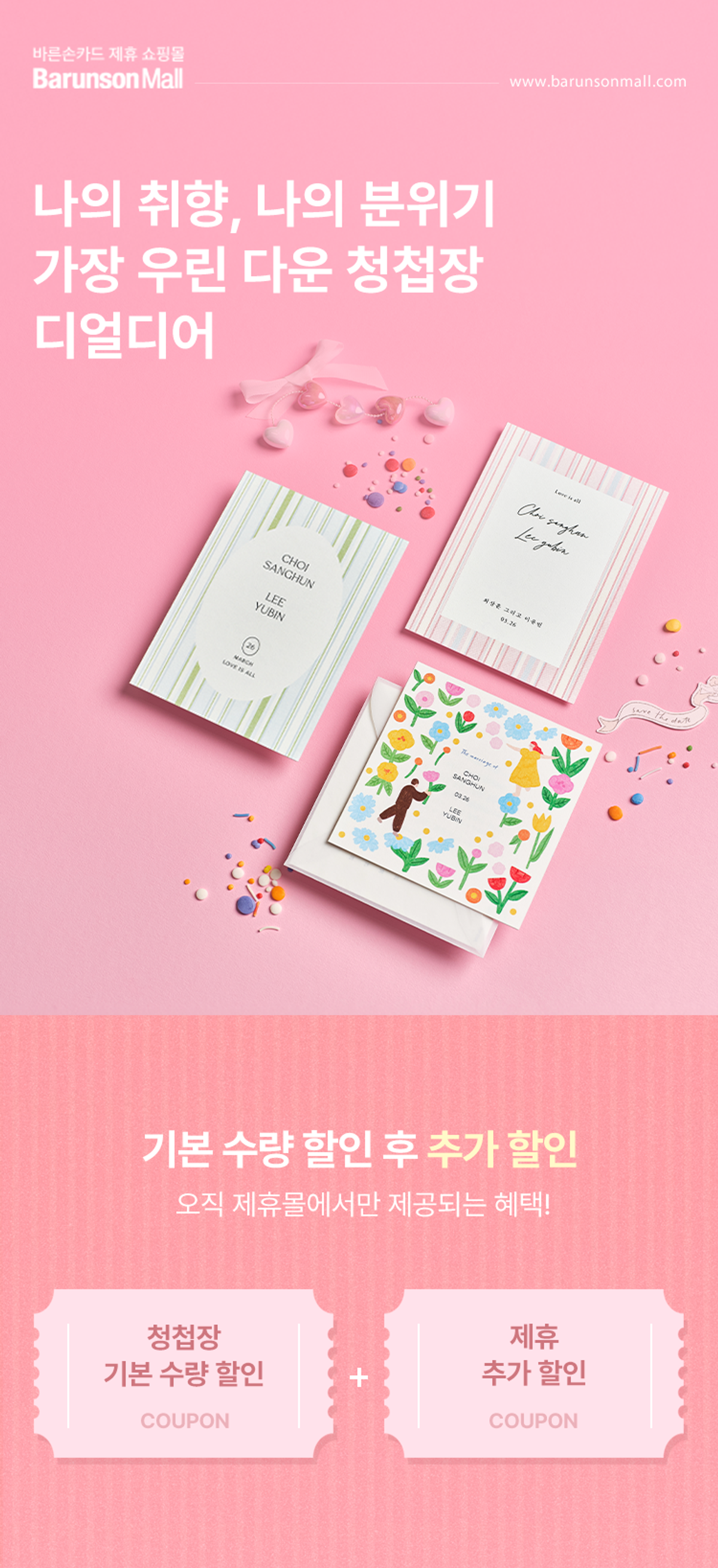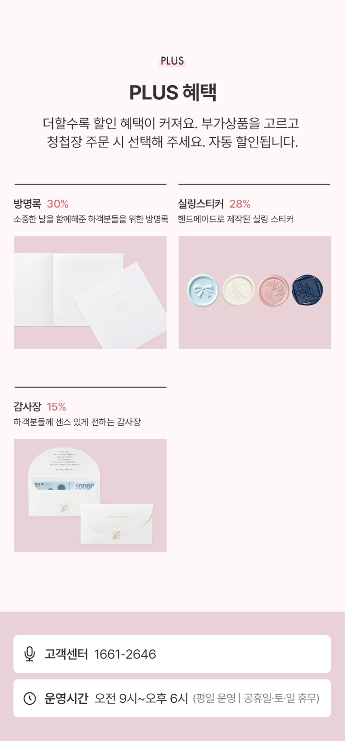 청첩장 매수별 할인 + 제휴사 10% 추가 할인