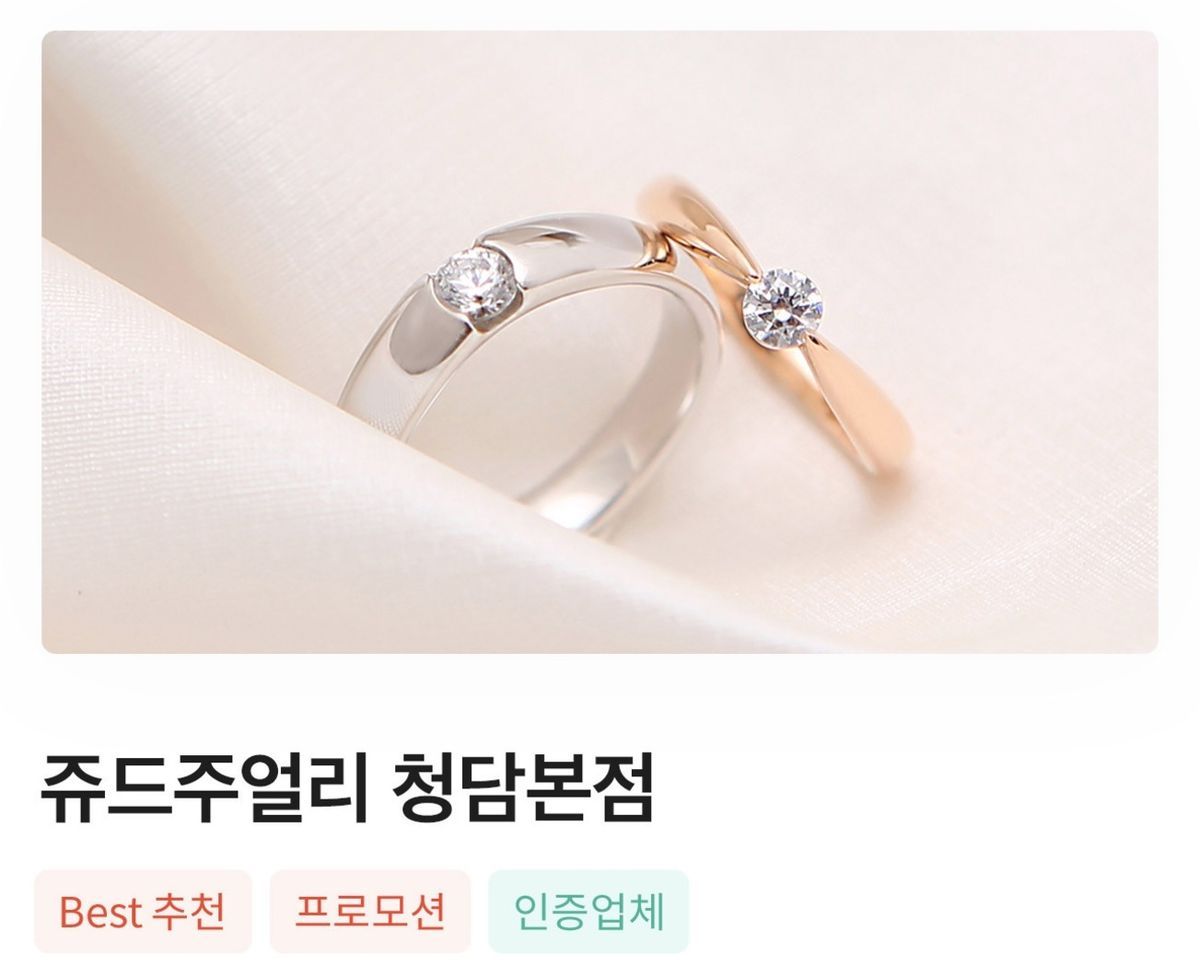 ✔️ 기간 : 3월 1일(일) ~ 3월 31일(화) ✔️ 웨딩북 앱 예약 혜택 💝 매장 방문 상담만 받아도 패션 귀걸이 증정 💝 평일/주말 관계없이 기본 할인 35% + ✨웨딩북 bonus 혜택✨ 웨딩북 통해 평일 첫 타임 (AM11:00) 예약 시 신세계 백화점 상품권 5만원 증정 + ✨웨딩북 bonus 혜택✨ 웨딩북 통해 주말 첫 타임(AM10:30) 예약 시 신세계 백화점 상품권 10만원 증정 ✔️ 계약 혜택 1. 14k 러프다이아몬드 가드링 증정 2. 양가 어머님 진주 귀걸이 증정 3. 고급 원목 반지 케이스 증정 4. 촬영 및 본식 명품 웨딩 티아라 무상대여 5. 계약 후기 작성시 백화점 상품권 증정 (최대 8만원) 6. 평생 A/S 무상 제공(2년 무상) *커플링 이상 계약 시 적용 *순금, 다이아몬드 제외 적용 *얼리버드 예약 혜택 네이버 혜택과 중복 불가