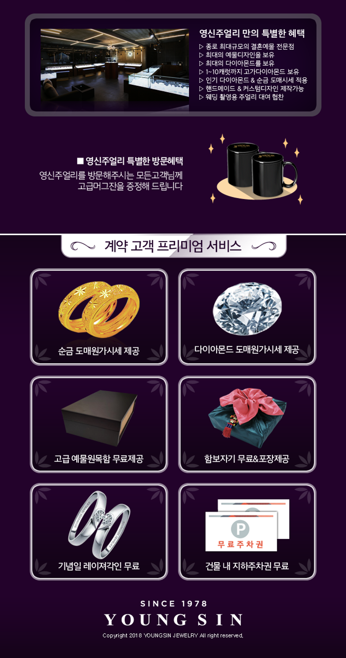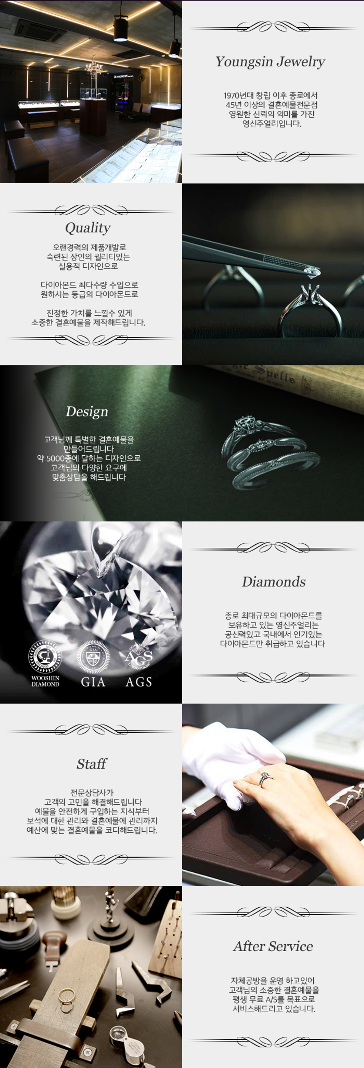 ✓ 효성주얼리시티 지하1층 단독매장 ✓ 오랜경력의 디자인스타일링 서비스 ✓ 2천쌍 이상의 웨딩밴드 보유 ✓ 다이아몬드 지정제도