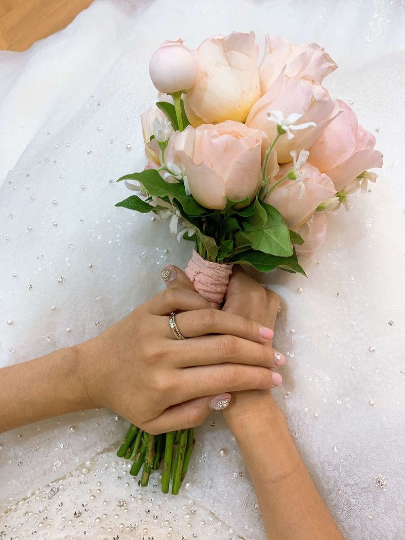 부케랑 네일 색이 비슷해서 그냥 좋앗어요ㅋㅋㅋㅋ 여리여리한 핑크색을 원햇는데 딱 그색이엇습니당ㅎㅎㅎㅎ 부케 : 보통♥ 줄리엣로즈 부케 했습니다. 다른 꽃 살짝 섞이는 디자인으로 했어요ㅎㅎ 가격 : 보통♥ 색이랑 모양은 맘에 들엇는데 식이 끝날때쯤은 약간 시드는 느낌이 잇엇네요ㅠㅠ 그리고 줄리엣 로즈는 던지면 부셔져 버리더라구요ㅋㅋㅋㅋ 넘나속상ㅠ 근데 이건 꽃 특성상 그런거 같아요ㅋㅋㅋ 어쩔수없죠ㅠ 모양이랑 이런건 만족해요 서비스 : 추천♥ 시간 늦지않고 샵에 도착했습니다ㅎㅎㅎ