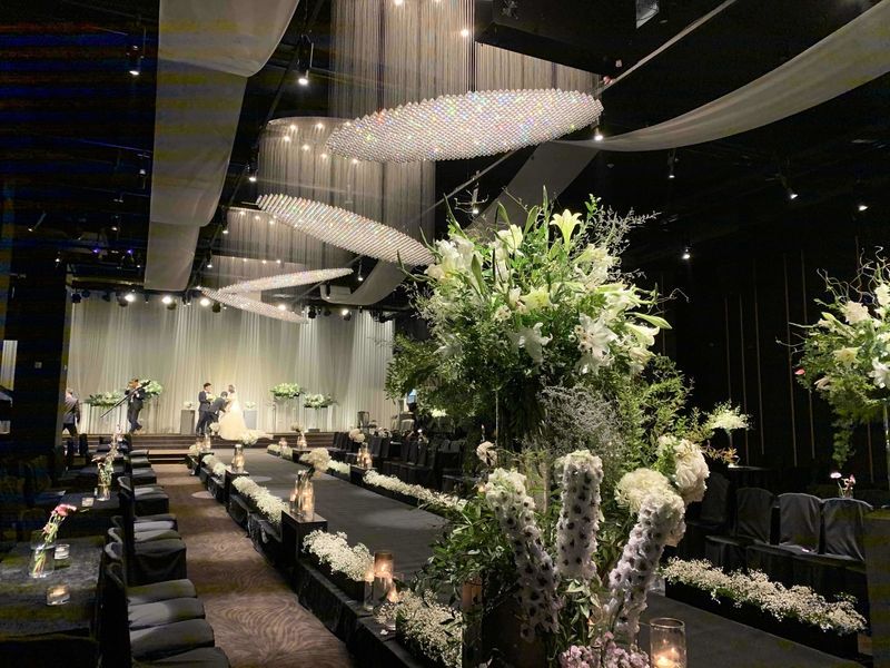 비교적 최근에 오픈했다보니 가격대가 조금있는 편이었어요. 그에 비해 위치적인 부분이나 홀외의 분위기들이 아주 조금씩 아쉬워서 계약까지는 가지못했지만 호텔느낌 나는 홀 분위기는 최고인거같아요!! 홀분위기 : 추천♥ 홀이 눈으로 보는거보다 사진찍으면 정말이쁘게 나오더라구요.... 꽃도 풍성하고 홀도 너무 비좁지않았어요 음식 : 보통♥ 먹어보지 못했는데 종류도 많고 깔끔해 보였어요. 서비스 : 추천♥ 설명 너무 친절하게 잘해주셨어요. 층별로 안내해주시면서 천천히 자세하게 설명해주셨어요