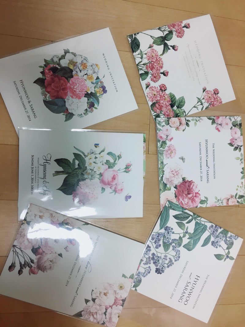 샘플 신청시 배송료(2500원)를 결제하셔야 하는데 이건 그대로 포인트로 적립 돼서 후에 사용하실 수 있습니다~ 디자인 : 추천♥ 촌스러운 꽃 그림이 아니에요 고급스럽고 예뻐요 보조카드(옵션)에는 교통편 및 약도가 있어요 가격 : 추천♥ 일반 청첩장보다 조금 비싸지만 만족해요 (할인기간이라 비슷하게 한거 같아요) 서비스 : 추천♥ 굉장히 빨라요 초안도 바로 나오고 수정 요청 후 30분 이내에 해주셨던거 같아요 그리고 최종 인쇄 전 한장을 미리 받아 보실 수도 있습니다 TIP : 12월 장당 100원 할인 중이에요 ^^