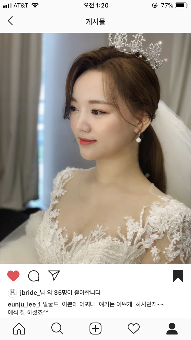 저는 양가 부모님 헤어 메이크업도 청담 컬처에서 함께 진행했어요 다들 만족하셨는데, 다만 아버님들 헤어하실 때 너무 오래 대기하게 하셔서 좀 불편해 하셨어요 부모님 메이크업은 그냥 전문샵에서 진행하시는 게 더 나을 듯 해요 스타일 : 추천♥ 자연스러우면서 또렷한 느낌이었어요 저는 개인적으로 색조를 즐겨하는 편이라서 약한 과즙 느낌 부탁 드렸었는데, 거기에 맞게 잘 연출해 주셨어요 담당샘 : 추천♥ 이은주 원장님 상담할 때 저에게 어울리는 스타일 잘 추천해 주셨는데, 다들 본식때 스타일링 너무 예쁘다고 칭찬해 줬어요! 상담 내역에 적으신 내용도 당일 메이크업 하실 때 하나하나 다시 살펴 보시면서 꼼꼼히 해주셨어요! 도희 실장님 헤어에 이은주 원장님 메이크업, 너무너무 완벽했어요^^ 서비스 : 추천♥ 전화 연락이나 실제로 샵에 갔을때나 늘 변함없이 친절하게 대해 주셔서 좋았어요^^ TIP : 한여름에는 메이크업실 에어컨이 세지 않은 편이라 많이 덥기 때문에 화장이 조금 무너지는 느낌이었어요 그리고 상담은 꼭 하시기를 추천해 드려요! 상담하면서 어울리는 스타일 추천을 받을 수도 있고, 제 단점이나 주의해 주셔야 할 사항도 꼼꼼히 전달할 수 있어서 좋았어요