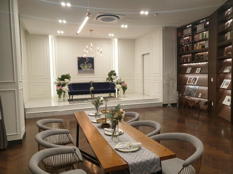 2층 모던 홀이예요 신부가 입장하는 계단도 따로있고, 문앞으로 들어오는 곳에는 조명이 밝아서 입장할때 더 눈부실것같아요 신부대기실은 깔끔하고 친구들도 쉬고 사진도 찍을수있게잘되있어서 기대됩니다😊 홀분위기 : 추천♥ 모던홀 예약했는데 전체적으로는 어둡고 식장 입구에 신랑 신부 들어가는 쪽 조명이 너무예뻐서 사진이 잘나올것같아요😁 개인적으로 너무맘에 드는홀이에요 신부대기실도 세트장처럼 깔끔하게 되어있어서 본식때 그쪽에서 한번더 사진찍고 싶어요😀 음식 : 보통♥ 제가예약한 시간대에 식사는 안해봤는데 상담하시는분께서 시간대 다똑같다고하셨어요 가끔 페이지에세 음식 먹어봤는데 맛있었구요 본식때도 잘나왔음 좋겠어용 서비스 : 추천♥ 아침에 일이생겨서 조금 늦게 갔는데도 너무 친절하게 맞아주셔서 감사했어요😆😆 가기전날에 문자도 다시주시고 서비스들어가는부분이랑 시간대별로 자세히 장단점이랑 연계된 책자도많이 주시고 그달그달 이벤트가 있었던거 같았는데 친절하게 척척챙겨주셔서 너무 좋았어요🥰