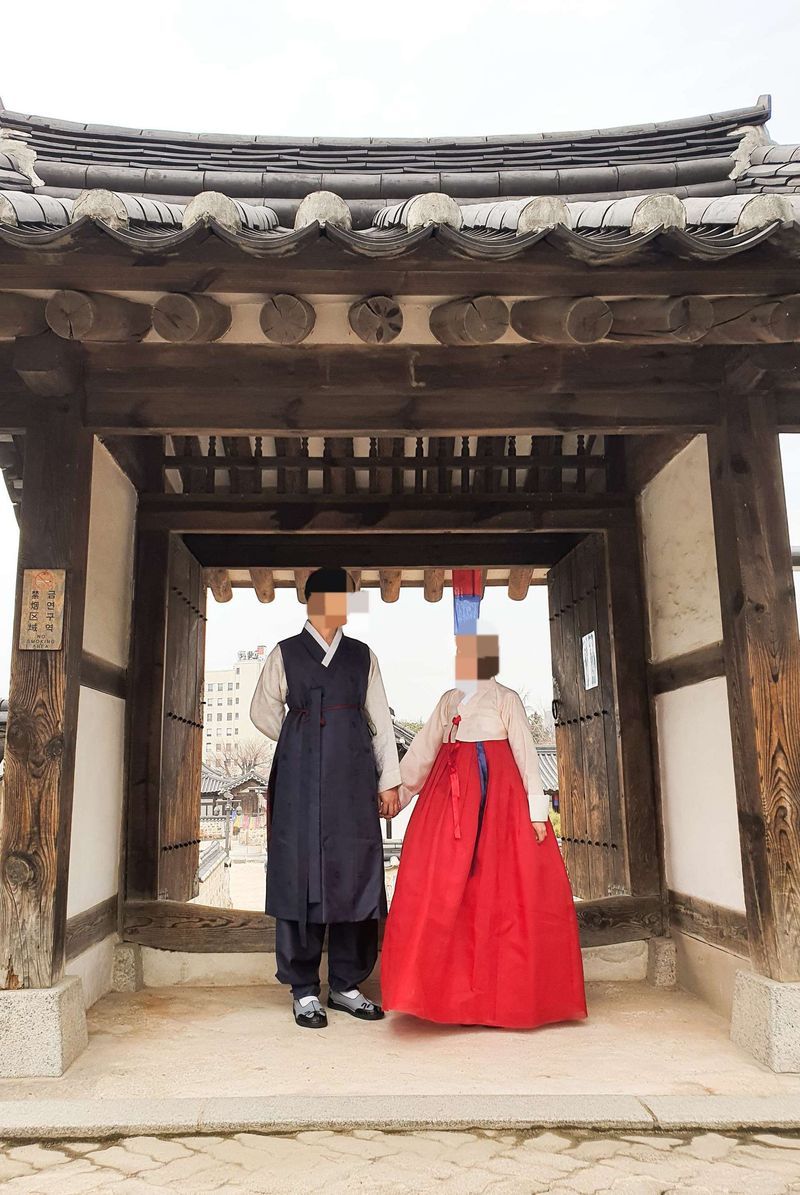 제기 가장 신경 많이 쓴게 한복이니만큼 지이인짜 맘에 들어요. 요즘 파스텔톤의 한복이 유행이지만 전 원색 하고싶다했어요. 사실 노랑색 한복 하고싶었는데 아무래도 한복은 어른들 의견이 많이 반영되다보니 빨강 원단 중에서도 저에게 어울리는 색을 여러번 대조하셔서 찾아주셨어요. 저고리는 여태 다닌 한복집들는 진주색 계열의 흰색 저고리를 많이 추천해주셨는데 여기는 분홍빛 섞여서 더 독특하고 예뻤습니다 고름은 튀지않게 얇은 세우는 고름으로 같은 색이 들어갔고 대신 속고름을 포인트로 줬어요. 처음 이야기했던게 남친이 빌릴 색솨 같은 남색이었는데 제가 노랑한복 하고 싶어한거 기억하시고 노랑 속고름도 서비스로 주셨더라구요♡♡♡ 스튜디오로 대여후에 그 주 주말 아무때나 반납가능하다하셔서 반납 전에 한옥마을가서 저희끼리 셀카찍으면서 분위기 냈습니다. 예쁜 한복 만들어주셔서 감사합니다 스타일 : 추천♥ 제가 한복을 가장 많이 신경써서 여러 한복집 방문했어요. 그 중 제일 배색이나 의견을 많이 따라주셨어요. 치마 모양도 신경쓰인다 했는데 치마는 항아리 속치마로 나갈거고 깃이나 고름, 속고름 색 등등 하나하나 다 맞춰주셨어요. 소매는 자수나 어떤 장식없이 가고싶다했는데 얇은 노랑 소매에 제가 원한 하얀 큰 소매를 덧대서 다양하게 입을 수 있도록 해주셨습니다 품질 : 추천♥ 한복 원단이 정말 많아서 원하는 색 원하는 원단을 자유로이 고를 수 있고 추천 폭도 넓어요. 서비스 : 추천♥ 하나하나 다 신경써주셨어요. 한복 피팅 후에 한꺼번에 스튜디오 택배로 가능하냐고 하니 계속 연락 주셔서 확인하나하나 해주시고 스튜디오로 무사 배달 되게 도와주셨습니다. 신부 한복은 맞춤, 신랑한복은 대여였는데 더 찍을 수 있게 신부 한복도 대여 짱짱히 해주셨어요