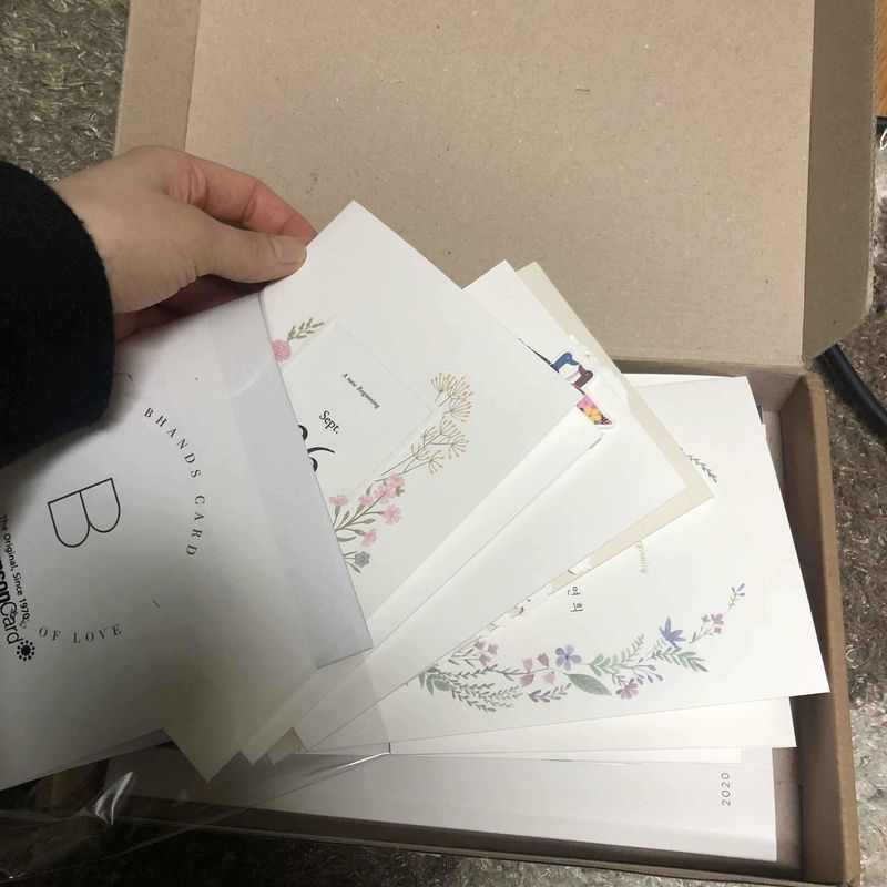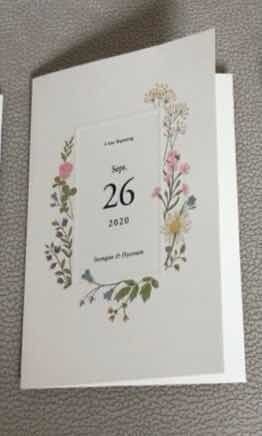 그날의 우리? 라는 청첩장으로 하게되었구요~ 디자인두 깔끔하고, 예뻐서 정말 맘에듭니당 인쇄중인 상태여서 실물은 아직 없구 샘플 사진 첨부했습니다~~ 비핸즈 카드 왕왕 추천이요😃😄😁 디자인 : 추천♥ 아기자기한거 좋아하는 스타일이여서 일로스트로 신랑신부 있는거 위주로 찾았는데 양가 부모님께서는 깔끔한 스타일로 했으면 좋겠다는 의견이 있어서 봄예식애 맞는 꽃으로 되어있고, 달력 표기 있는 청첩장으로 골랐습니다! 가격 : 추천♥ 350매 햇구여 14만 5천원 정도였는데 할인받아서 13만원 장당 385원으로 주문했어요! 바른손계열사라 그런지 청첩장 크기도 적당하고, 양가 부모님께서 넘 예쁘다고 하셨어요! 서비스 : 추천♥ 제가 수정요청을 3번 이나 문의했었는데 피드백도 빠르고 요청사항 다 들어주셨어요! 정말 만족합니당