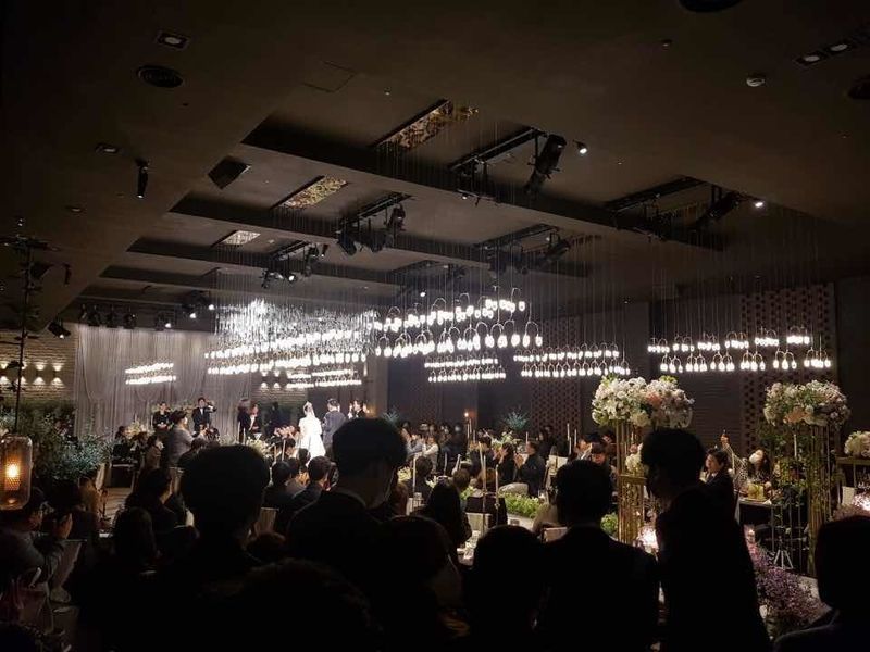 크게 아쉬운점 없이 좋았어요 주차는 무료로 700대 이상, 수원역 셔틀버스 제공에 역이랑 가까우니까 걸어서도 방문할 수 있다는 점 조금 아쉬웠던 점은 2층 로비가 작다는 것..? 포토테이블도 여태 가봤던 홀들 중에 제일 예쁘게 셋팅되어 있었고 신부대기실에서 단독홀로 바로 이어지는 동선도 좋았습니다 ㅎㅎ 홀분위기 : 추천♥ 천장 조명이 솔직히 너무 예뻤습니다..ㅋㅋㅋ 고급스러운 홀 느낌에 단독홀이니까 좋았어요 버진로드도 긴 편에 너무 어둡지도 않은 은은한 분위기로 잘 연출되어 있어요! 홀 들어가는 순간 확 반했네요 ㅎㅎ 전체적으로 군데군데 비어 보이는 느낌 없이 생화 장식이 많아서 향기로워요 하객석도 버진로드를 정면으로 보거나, 긴 테이블, 원형 테이블 다양하게 배치되어 있어요 그리고 버진로드 따라서 푸릇푸릇한 식물 장식! 정말 예뻐요ㅠㅠㅠ..!! 단 하나의 단점도 찾지 못할 만큼ㅋㅋㅋㅋ 마음에 드는 단독홀이에요 조명 디자인부터 샹들리에도 별이 쏟아지는 거 같이 촘촘해요 음식 : 추천♥ 상차림으로 제공되는 궁중 한정식이랑 세미뷔페인데 저희가 원하던대로 퀄리티가 좋았어요 어르신분들이 많이 참석해주실 예정이라 든든하게 대접해드릴 수 있을 거 같습니다~ 전복이랑 장어가 리필이 안되는 건 아쉽지만 세미뷔페도 있으니까 부족하게 식사를 하실 일은 없겠죠 ㅎㅎ! 연회장은 3층이랑 4층에 있는데 큼직하게 넓고 잘 꾸며져 있어요 단독연회장으로 쓴다는게 좋았어요 혼주석은 따로 공간이 있는데 분위기가 깔끔하니 마음에 듭니다~ 서비스 : 추천♥ 차분하게 설명도 잘 해주시고 처음에 맞이해주실 때부터 친절하셔서 상담받는 내내 기분이 좋았어요! 저랑 예랑이가 질문할 때도 잘 들어주셨구요 사소하게 궁금한 것도 자세히 답변해주셨어요~ 그리고 견적! 혜택도 많이 받았고 금액도 저희가 생각한 예산에 잘 맞게 높지 않았어요 마냥 어렵다고만 생각했던 투어였는데 기분 좋게 방문하고 가용 ㅎㅎ
