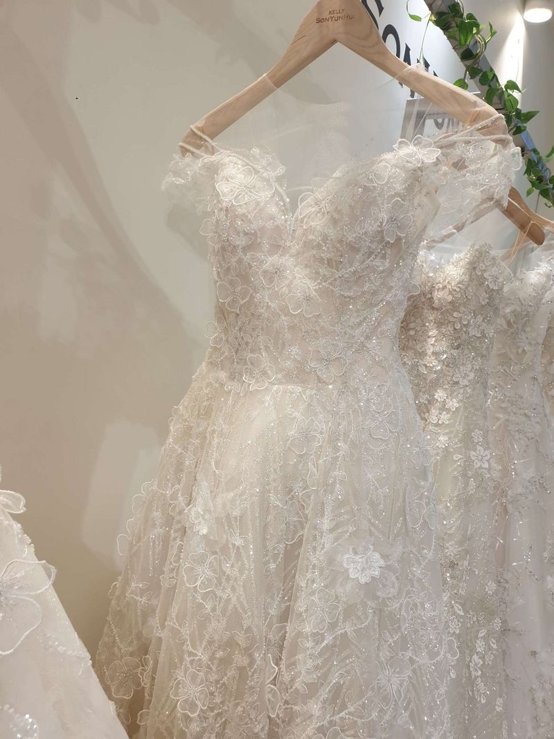 신상 드레스가 자주 나와서 좋아요. 그대신 어마무시한 추가금이 있지만요. 샾은 깨끗했고 이뻣어요. 프로페셔널 한 느낌. 근데 저를 담당해주셨던 분 센스가 별로였어요. 피치계열 입고싶댔눈데 골드 가져왔고 결국 안어울려서 좀 짱났던 기억이 있어요 ㅎㅎ 스타일 : 추천♥ 드레스가 다 진열이 되어있어서 직접보고 입고 싶은 드레스를 고를 수 있어서 좋았어요 옷상태 : 추천♥ 제가 입어보았던 드레스들은 다 새것처럼 깨끗했어요 서비스 : 보통♥ 서비스는 사실 나쁘지는 않았지만, 이전에 투어했던 두 곳보다는 별로였어요. 특별히 좋은게 없었다는 느낌? 그래도 드레스가 이뻐서... 결국은 여기서 드레스 입게됬어요