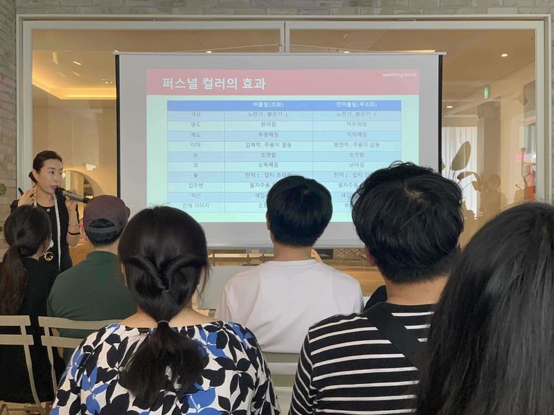 한시간이 조금 넘는 강의였는데 한시간이 한시간 같지않게 너무 재밌었어요 시간가는줄도 몰랐고 다음일정이없었다면 더 이야기 하고 상담받고 싶었는데 일정 때문에 아쉬웠어요 ㅠㅠ 모두들 투어때 카이라 브라이덜을 넣으시면 아마도 본인의 퍼스널 컬러와 그외에 신체 비율에 따른 잘 어울리는 드레스유형을 아실수있을것같아요!! (강의가 끝난후 수강생의 반 이상 분들이 줄서서 컬러와 비율 등 어깨 팔 다리 등의 비율 등을 측정해보시더라구요 부러웠어요 ㅠㅠ ) 저는 정말 많은 도움이 됐어요 추천이에요!!! 업체 : 추천♥ 드레스쿨!!!! 카이라 부라이덜 원장님께서 직접 퍼스널 컬러와 그에 맞는 분위기 악세서리 부케 등 어울리는 것에 대해 알려주셨어요^^ 가격 : 추천♥ 오천원으로 이 기회에 좋은 클래스를 듣게되어 너무 감사했어요^^ 서비스 : 추천♥ 웨딩북 직원 분들은 워낙 친절하신건 다들 아시잖아요^^ 또 좋은 정보를 알고와서 너~~~무 좋았어요 제가 평소 어울리는 것을 체크해서 그에따라 제 컬러를 알수있었고 계절에 맞추어 이야기 해주셔서 드레스 투어때 많은 도움이 될것 같아요!! 또 퍼스널 컬러사 연예인에 비교해서 이야기 해주시니 이해가 더욱 잘됐던것같아요^^