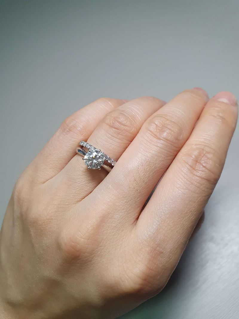 맨마지막 사진이 결혼 후 재방문해서 맞춘 가드링하고 같이한 사진이에요:3 링 디자인이 알을 돋보이고 더 커보이게하는 효과가 있어요. 세팅이 잘되야 다이아 빛이 극대화되는데 넘 예쁘게 잘 나왔어요^0^ 시간이 촉박해서 결혼식때 낄 수 있을까 했는데 다행히 신경 잘 써주셔서 빨리 받을 수 있었어요. 디자인 : 추천♥ 다이아 세팅이 특허 디자인이라 그런지 확실히 다른곳 대비 이쁘더라구요. 다이아크기가 커보이고 돋보이는 디자인으로 골랐는데 넘 이뻤어요. 사람들이 알 커보인다고 크기가 뭐냐구 묻더라구요ㅎㅎ 세팅 마감이 잘되서 낄때 부드럽게 잘들어가구 딱 맞더라구요. 착용감이 무척 좋아서 신나게 끼구다닙니다ㅎㅎ 품질 : 추천♥ GIA 다이아 등급별로 다양하게 많이 구비해두고 계셔서 직접 여러개보고 비교해 볼 수 있어 좋았어요. 결혼 준비기간이 촉박해서 청담 예물샵 두 곳, 종로샵 두 곳, 명품브랜드 몇 군데 밖에 못 보았는데 흔하지 않은 등급으로 확실히 고퀄 다이아를 많이 구비해두고 계시더라구요! 가격대도 다양하구요. 백화점은 확실히 급이 좋긴한데 브랜드 가격 거품이 많아서 예물샵으로 결정했는데 다이아 퀄리티 종류가 많은곳으로 선택했어요. 서비스 : 추천♥ 김민 이사님 너무 친절히 응대해주셨어요. 이야기하다 보니 두 시간 가까이 시간이 흘렀더라구요. 그 정도로 모든 궁금증을 해소해주시고 설명이 디테일하셨어요. 백화점이 아닌 예물샵을 돌아다니다 보니 세팅이나 다이아 품질은 기본이구, 신뢰가 가장 잘 갔던 분이어서 선택하게 되었던 거 같아요. 방문하고 궁금한 것 전화로도 몇번 문의했는데 변함없이 친절히 응대해주셨어요! 결혼 후 첫 생일선물로 가드링 또 맞추러 재방문 했구요~고퀄로 넘 이쁘게 잘 나왔어요 대만족이에요♡