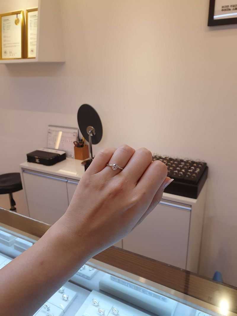 다이아가 더 커보여서 너무 만족♡ 일반적인 디자인의 다이아반지가 아니라서 너무예쁘다 디자인 : 추천♥ 5부다이아반지를 고르는데 일반적인디자인말고 독특하고 화려한디자인을 원했다 로이엔 반지는 내가 원하는 스타일이었다. 가드링을 한 것 같고 다이아가 좀 더 커보인 반지였다 품질 : 추천♥ 가격은 예상보다 저렴했고, 나중에 다이아를 가져올시 매입한 그 가격 그대로 보상해준다고 해서 마음에 들었다 서비스 : 추천♥ 매우 친절. 다이아 등급에 대해 자세히 설명해주셨고, 여러 디자인의 반지를 보여주였다. 그리고 서비스로 혼주브로치로 제공해주셨다 ㅎㅎ