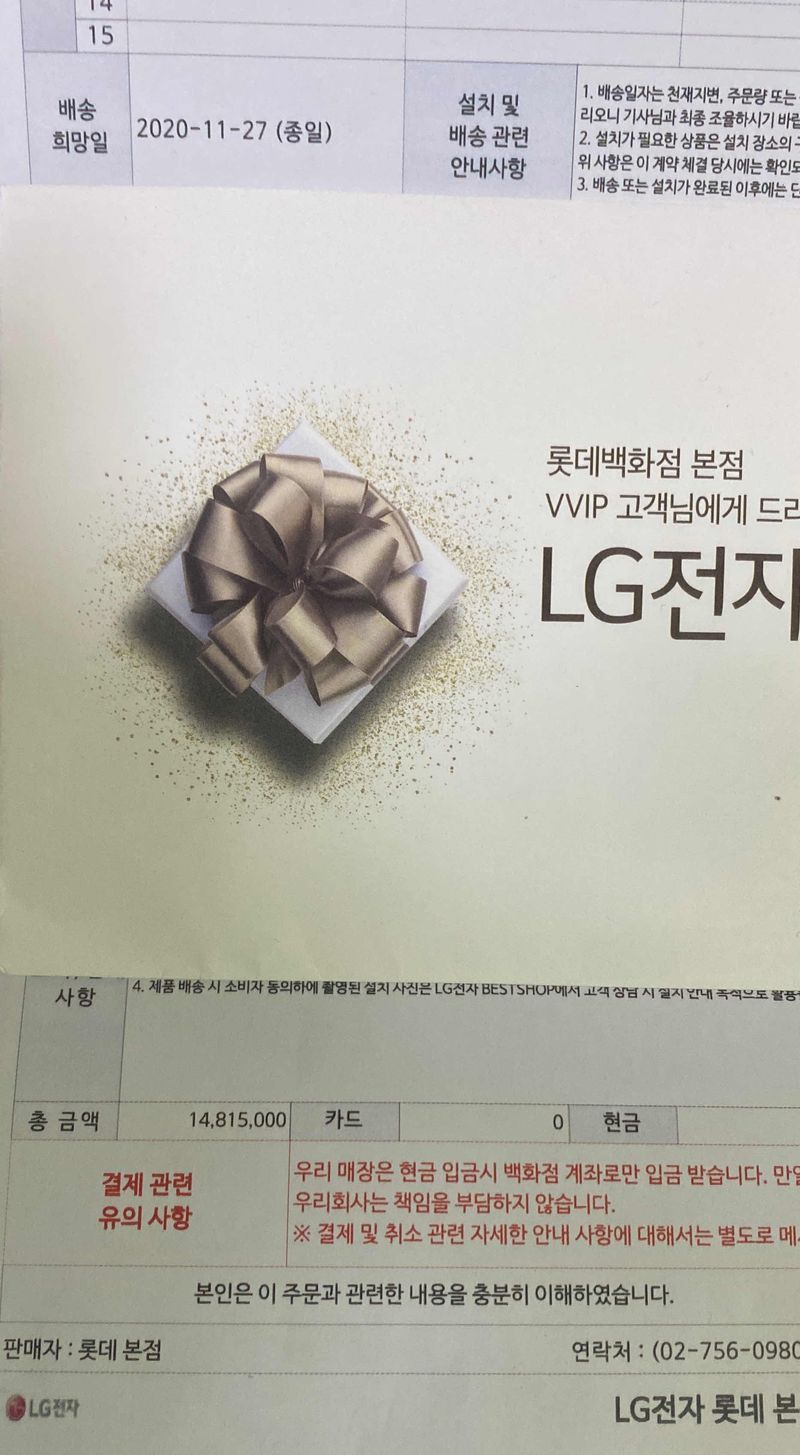 이번주가 행사 마지막이라 사람이 정말 많았어요 일부러 일요일에서 금요일로 예약 옮겼는데 상담 매니저님이 미리 연락오지는 않았고 현장에서 배정되었는데, 진짜 센스있고 밝고 설명 잘하시는 매니저님이었어요 두시간이 지루하지않았습니다 ㅎㅎ 상품 : 추천♥ 55인치 티비 : OLED55BXFW 3구 인덕션 : BEI3MT 코드제로청소기 풀세트 : A9700IK 블랙워시타워+스타일러5구 : W15KT-5MBA 18평에어컨 : FQ18HADWB2 양문형노크온냉장고 : S631Mc75Q 가격 : 추천♥ 총 견적 1480만원인데 모바일상품권, 웨딩마일리지 등 합해서 체감가 1140만원 나왔어요 서비스 : 추천♥ 매니저님이 아주아주 친절하고 센스있어서 너무 상담 잘 받구왔어요 ㅎㅎ 계약도 바로 했네요!