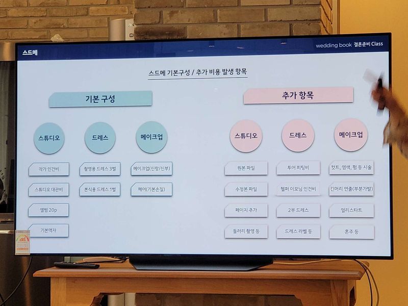 결혼준비의 전체 로드맵을 그리는것부터 아래사진과 같이 세부적인 틀을 잡하보는 내용까지 비록 1시간짜리라서 깊게 들어가진 못했지만 제공해주신 책과 어플을 같이 참고하면 도움이될만한 수업이었습니다. 업체 : 추천♥ 클래스를 수강하였기에 별도로 선택한 업체는 없으며 클래스는 결혼전 로드맵을 그리거나 애매한상황들에 대한 어느정도의 답을 얻어갈수있는 수업이었습니다. 가격 : 추천♥ 웨딩북에서 무료로 진행한 클래스를 수강하였기에 별도로 지불한 금액은 없습니다. 서비스 : 추천♥ 웨딩북청담의 직원분들은 전체적으로 친절하셨습니다.