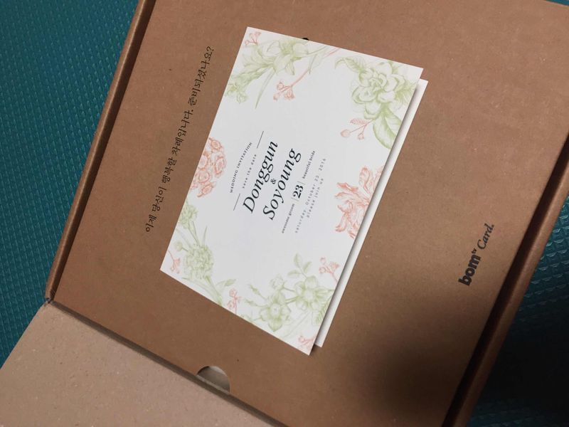 사진투척 디자인 : 추천♥ 디자인이 최고예요! 샘플 10장 받았는데 다 예쁘고, 달력 모량에 결혼 일자를 체크할 수 있어서 한눈에 보기 좋은 것같아요. 봉투도 유색으로 고를 수 있어서 (약간 오돌도톨 제질) 좋네요 가격 : 보통♥ 괜찮은 것 같아요 :) 품질대비 적절해요 서비스 : 추천♥ 무료 샘플인데 포장도 넘 정성스럽게 왔어요. 진짜 감동인건 청첩장 열어보면 향기가 나는데 일부러 신경써주신 느낌이었습니다 이런게 향기 마케팅 이겠죠? ㅎㅎ TIP :