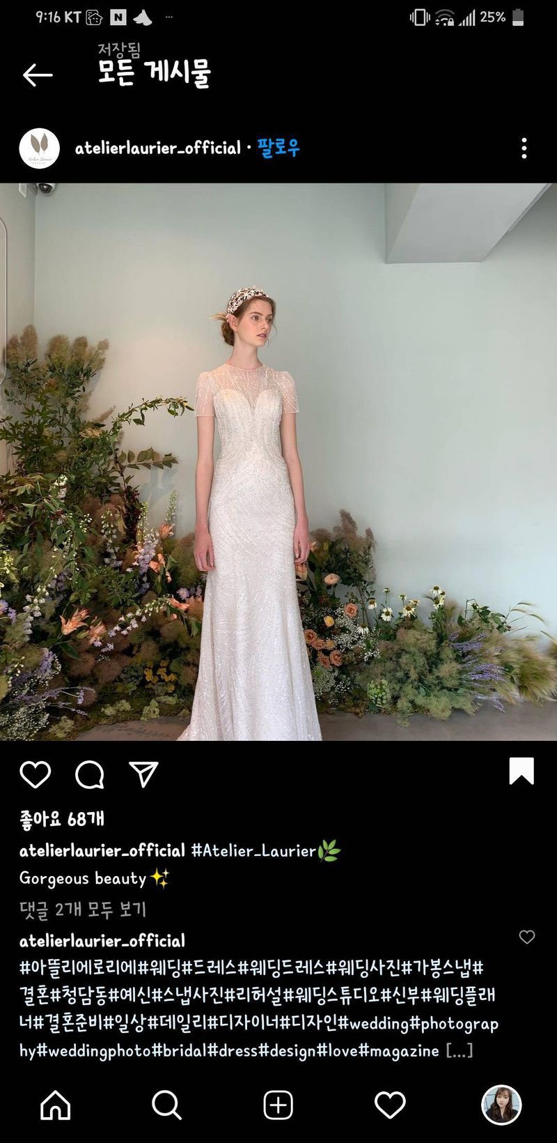 은은하게 떨어지는 줄비즈의 고급짐과 독특함!! 샵을 고르진 않았지만 지금까지도 눈에 아른거리네요. 느낌이 비슷하시다면 100프로 만족할 드레스샵이 될 것 같습니다. 특히 블랙라벨 전부 당일지정 혜택으로 추가금을 안받는다 하시더라고요. 다만.. 투어시 블랙라벨을 입어보지 못해 아쉬웠어요. 블랙라벨이 아닌 기본라인도 충분히 고급져서 나중에 따고 문의한뒤에서야 구 사실을 알았네요~ 스타일 : 추천♥ 드레스 스타일은 고급짐에 비해 제 취향과는 조금 차이가 있었던 것 같아요. 그래도 다양한 스타일의 고급짐을 맛볼 수 있었습니다. 옷상태 : 추천♥ 드레스 상태는 제가 입어본 옷들이 전부 기본라인이었는데도 훌륭했어요. 샵 환경도 전반적으로 깨끗했습니다. 서비스 : 추천♥ 사람이 많이 붐비는 시간으로 다소 정신없긴 했지만 상담은 꼼꼼히 진행해주셨어요. 어떤게 어울린다, 어떤 쪽으로 입어보심 좋을거다 등등 좋은 의견을 많이 주셨습니다. 다만 블랙라벨은 한벌도 입어보지 못해 아쉬웠네요.