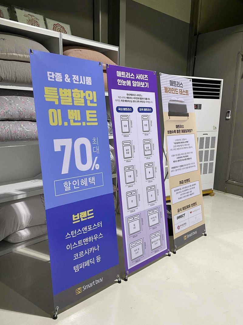 안녕하세요!! 1월초 신혼집 입주를 앞둔 예신입니다ㅎ 저희는 수면의 질을 중요하게 생각하여 매트리스는 좋은걸 사고싶었지만 예산이 넉넉한 편은 아니였고, 예랑이와 저 둘다 막몸?이여서 백화점 돌다가 매트리스 보이면 잠깐 누워보고 다 좋다고 하는 편이라 우리에게 좋은 매트리스를 어떻게 판단하고 구매해야하나 걱정이 많았습니다ㅠ ​ 그러던 중 타 웨딩카페에서 매트리스 블라인드 테스트라는게 있다는걸 알게 되어 바로 방문예약을 하였습니다ㅎ 저희 집은 대전인데 주말에 김장하러 김포 할머니댁에 갔다 오는길에 스마트바이 수원점을 방문 했구요! 방문하기 며칠전에 예약확인차 연락을 주신 직원분께서 꼭 시*스나 에*스를 다녀와 보라고 하셔서 방문 당일 아침에 시*스도 방문하고 스마트바이 수원점으로 갔습니다! 시*스 후기를 간략하게 말씀 드리자면.... 무슨 150주년 행사에 더블할인 등등 해서 저희가 고른건 최종 매트리스 400중반 + 프레임 200 초반 이였습니다^^.... 가격에 치여서 구매생각은 1도 없었구요ㅎ.. ​ 그리고 스마트바이 수원점!! 네비 찍고 도착했을땐 여기가 맞나..? 싶고 문 닫은거 아닌가..? 싶었는데 정상적으로 영업중인 매장 맞습니다ㅎㅎ 저희를 담당해주신 분은 김경태 점장님 이셨구요! 친절함+유머+센스가 완벽하신 분이였습니다 매장에는 매트리가 20개 정도 있었는데, 매트리스마다 강도가 모두 달랐고 매트리스 강도는 1(단단)~10(푹신) 단계가 있었는데, 같은 강도여도 폼이 더 적냐 많냐에 따라 또 느낌이 다 달랐습니다 예랑이와 저는 몸무게 차이만 해도 30키로 정도가 나기 때문에, 너무 단단하면 제가 불편하고 너무 푹신하면 예랑이가 땅까지 꺼질 기세여서 둘 모두에게 적합한 매트리스는 강도가 3~5 사이였고, 블라인드 테스트 1차에서 저희에게 맞는 대략적인 강도를 알아냈으면 2차에서는 강도 3~5단계에 해당되는 매트리스를 베개와 함께 좀 더 길게 누워보고 상위권 3개를 고르는 단계입니다. 1차에서는 배게없이 테스트를 하였는데, 2차에서 베개가 들어오면서 느낌이 또 다 달라지더라구요 예랑이와 아주 신중한 매트리스 평가를 거친 후에 최종 2개를 뽑았고, 마지막 3단계는 최종 2개에 대한 정보와 가격설명을 듣고 만족할때까지 누워보고 비교해서 결정하게됩니다! 저희가 최종 선택한 매트리스는 썰타 제품 이였구요, ​ 장점과 특징을 간략하게 말씀 드리면, ​ 1. 양면 사용가능 (매트리스 수명이 다른거에 비해 훨씬 김, 약 15년 정도) ​ 2. 호텔납품 전용 매트리스 ( 썰타 공식 홈페이지에서도 확인이 가능함, 호텔에서만 구매할 수 있는 매트리스 이고, 개인?업체에서의 공식수입은 스마트바이가 유일함) ​ 3. 난연 매트리스 ( 불이붙지 않기 때문에 전기장판 사용해도 걱정없음) ​ 4. 일체형 스프림 ( 요즘은 개별스프링, =흔들리지 않는 편안함 이 많이 나오는데 개별스프링에 경우 매트리스 위에서 뛰거나 충격이 가해질 경우 스프링이 꼬이거나 위치가 뒤틀릴 위험이 있다고 하셨습니다) ​ 5. 친환경 소재 (설명이 필요 없쥬?) ​ 6. 오코텍스 1등급 (원단 안정성 인증마크) ​ 7. certipur-us ( 매모리폼 친환경 인증마크) ​ 8. A/S 10년 ​ 이정도가 있구요, 저희는 예랑이가 등치도 있는 편이라 제일 큰 이스턴킹 사이즈로 계약하고 왔습니다!! ​ 사은품으로는 매트리스 방수커버와 경추베개 2개 받았네요 ㅎ ​ 매트리스 테스트 후 계약까지 2시간 쪼끔넘게 걸렸구요 계약을 마치고 나오니 첫눈이 오고 있더라구요ㅎ ​ 친절하게 상담해주신 김경태 점장님 감사합니다! 상품 : 추천♥ 2시간동안 블라인드 테스트 후 저희 커플에게 가장 잘 맞는 편안한 매트리스 였습니다 가격 : 추천♥ 상품 : 썰타 매트리스 가격 : 195만원 사은품 : 매트리스 방수커버, 경추베개 2개 서비스 : 추천♥ 김경태 점장님이셨는데, 친절+유머+센스 삼박자가 아주 완벽하신 분이였습니다ㅎ