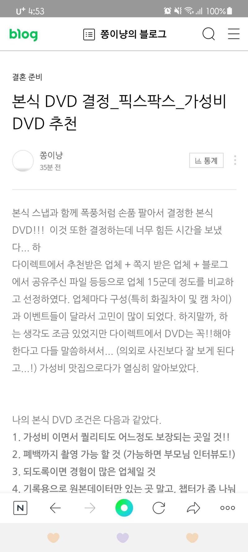 본식 스냅과 함께 폭풍처럼 손품 팔아서 결정한 본식 DVD!!! 이것 또한 결정하는데 너무 힘든 시간을 보냈다... 하 다이렉트에서 추천받은 업체 + 쪽지 받은 업체 + 블로그에서 공유주신 파일 등등으로 업체 15군데 정도를 비교하고 선정하였다. 업체마다 구성(특히 화질차이 및 캠 차이)과 이벤트들이 달라서 고민이 많이 되었다. 하지말까, 하는 생각도 조금 있었지만 다이렉트에서 DVD는 꼭!!해야한다고 다들 말씀하셔서... (의외로 사진보다 잘 보게 된다고...!) 가성비 맛집으로다가 열심히 알아보았다. 나의 본식 DVD 조건은 다음과 같았다. 1. 가성비 이면서 퀄리티도 어느정도 보장되는 곳일 것!! 2. 폐백까지 촬영 가능 할 것 (가능하면 부모님 인터뷰도!) 3. 되도록이면 경험이 많은 업체일 것 4. 기록용으로 원본데이터만 있는 곳 말고, 챕터가 좀 나눠져 있는 곳일것! - 대부분의 가성비 DVD 업체들은 30-40분 내외 영상만 담아주시는 곳이 종종 있었다... 이 조건들을 기준으로 리스트에 있던 업체들을 고르고 골라, 어렵게 결정 된 곳.  " 픽스팍스"  픽스팍스 웨딩DVD, 본식DVD, 결혼식영상, 식전영상, 감사영상 www.pixpax.co.kr 홈페이지에 가면 다양한 샘플 영상들을 볼 수 있다! 픽스팍스는 무려 11년의 오래된 경력을 가진 업체이다. 그래서 신뢰감 상승! 하지만 핸드폰번호나 카톡이 없어서 우선 이메일로 문의를 드렸고, 굉장히 상세하고 친절하게 답장을 주셨다! 답장도 메일과 휴대폰 문자로 금방 오는 편이였고, 조금 늦어질때면 미리 말씀주시고 언제까지 보내드리겠다고 이야기해 주셨고, 실제로 그 시간에는 대답을 주셔서 신뢰도가 상승했다. 그리고 무엇보다도 1. 챕터별로 구성해 주신다는 점 (하단의 사진처럼 챕터가 나눠져서 구성이 된다. 물론 원본도 따로 주신다.) 2. 홈페이지의 샘플 영상의 퀄리티가 높은 점(홈페이지에 가면 챕터별 영상을 자세히 볼 수 있다!) 3. 11년의 오랜 경력을 가지신 점 4. 이벤트로 식전 영상과 하이라이트 제공이 마음에 들어 계약하게 되었다!! + 물론 짝꿍 이벤트 할인도 가능하여 난 3인 짝꿍 할인 받았다!! 짝꿍 구하는 과정에서 다이렉트에 올린 글이 빛삭되는 슬픔도 맛보았지만... 그래도 무사히 3인짝꿍을 구했다!! 휴  내가 선택한 본식VDSLR-I 형은 다큐멘터리 형식의 스케치 타입과 다큐+뮤직비디오 형식의 드라마 타입을 고를 수 있다. 모든 챕터는 신부대기실, 하객 맞이 ~ 폐백, 인터뷰, 축가까지 아주 알차게 구성되어 있다! 의외로 폐백은 스냅처럼 추가금이 붙는 경우가 많아서 잘찾아보지 않으면 추가금 대환장 파티....! 우린 인터뷰도 부탁드렸는데, 인터뷰는 3팀 정도 미리 선정해서 부탁드리는 편이 좋다고 한다. 계약 완료 후에 계약서와 함께 전화로 안내 주셨는데, 너무너무 친절하시고 문의 사항에 대해서도 잘 말씀주셔서 믿고 맡길 수 있겠다는 든든한 마음이 들었다 >.< 특히 매번 메일에 믿고 찾아주셔서 감사하다, 최선을 다하겠다는 문구를 매번 써주셔서 더 든든쓰!! 그리고 이 좋은 구성을 30만원 대에 계약할 수 있어서 너무 좋았다!! 보통 30만원 대의 다른 업체들을 보면 그냥 단순 기록용으로 편집없이 주는 경우가 많았는데, 이렇게 챕터 구성으로 된 DVD를 30만원 대에 받을 수 있다니 핵이득!!!! 그리고 계약 후기 작성 이벤트로 제공되는 식전 영상도 함께 보내주셨는데, 퀄리티가 매우 좋았다! 예전에 회사 송년회 준비하면서 비슷한 영상을 준비한 적이 있었는데 꽤 비쌌던 걸로 기억...! 업체에서 통화로 안내주신 것처럼 우리의 어린 시절에서 부터 어른이 된 우리에서 제주도 스냅까지 결혼하는 우리의 모습을 담는걸로 생각했는데 과연 사진을 모을 수 있을지 ㅎㅎㅎㅎㅎ 이번 설 연휴에도 집에가서 열심히 사진을 찾아봐야지....! 지금 픽스팍스에서 진행중인 이벤트는 다음과 같다. 1. 짝꿍 할인 이벤트 : 최대 3인, 3만원까지 할인 2. 예약 후기 작성 이벤트 : 식전 영상 또는 하이라이트 제공 3. 촬영 후기 작성 이벤트 : 하이라이트 제공 이번에 예약 후가로 식전 영상, 촬영 후기까지 알차게 작성해서 하이라이트도 제공받는 것이 나의 목표!! 촬영후기를 작성 할때면 벌써 올해 말이 되겠지... 그때까지 결혼 준비 잘해서 무사히 결혼식을 치뤘으면...! 그리고 코로나가 제발 좀 잠잠해지면 정말 좋겠다! 암튼 가성비 DVD 업체 찾으시는 분께, "픽스팍스" 추천드립니다!! 저는 이미 짝꿍을 꽉채워서 못하지만, 잘 찾으시면 짝꿍 구하실 수 있으니 꼭 짝꿍 구하셔서 할인 받으시구 식전 영상 + 하이라이트도 챙기세요!! 혹시라도 질문 있으면 쪽지나 댓글로 남겨주세요~ 제가 아는 선에서는 열심히 답변 드리겠습니다!! 다들 결혼준비 화이팅!!!! 스타일 : 추천♥ 영상이 챕터별로 잘 구성이 되어있고, 가성비 대비하여 알찬 구성으로 촬영해주시는 업체입니다. 가격 : 추천♥ 상품은 30만원대 부터 가능하고, 다큐 형식의 스케치 타입과 뮤비도 같이 들어있는 드라마 타입으로 구성괴어 있어서 좋았습니다. 가성비 대비 정말 훌륭 합니다 ㅠㅠ 서비스 : 추천♥ 우선 금액이 홈페이지에 오픈 되어 있는 점, 연락을 바로 주시고 메일과 문자로 알려주시는 점, 메일과 전화로 친절하