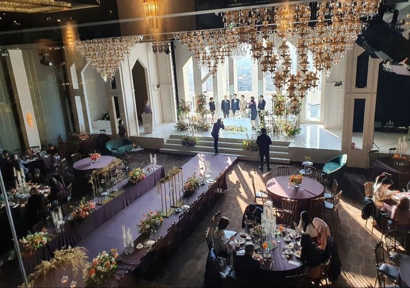많이 기대하고갔었는데 그냥 일반적인 웨딩홀느낌이었습니다. 호텔식을 생각하고 방문하신다면 맞지 않을것 같습니다. 꽃장식은 기본만 해도 충분하여 그부분은 괜찮게 생각되었습니다. 홀분위기 : 보통♥ 5층 홀의 유니크한 개방감을보고 방문하였습니다. 5,6층 복층이나 5층 하객석에서 층고는 너무 낮게 느껴졌습니다. 홀 규모도 생각했던것보다 작아서 선택하지 않았습니다. 음식 : 코로나로 방을 나누어 최대한 많은 분들이 식사하고 가실 수 있게 배치되어있었습니다. 다만 음식은 구성에비해 가격이 비싼느낌이었습니다. 서비스 : 특별히 혹하는 혜택은 없었던것 같습니다. 여려면에서 호텔식이라고 하기에는 많이 부족한것 같습니다.