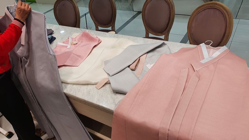 예랑이랑 둘만 갔었고 부모님 한복을 대충 색을 골라두고 왔아요. 같이 못 가게 돼서 톤을 맞춰서 추천해주실 것을 부탁드렸는데 역시나 넘 잘해주셨어요! 스타일 : 추천♥ 요즘 스타일로 파스텔톤이 많아서 좋았어요. 종류도 다양하고 다 볼 수 있어서 좋아요.(드레스샵과 차별화) 품질 : 추천♥ 본견(천연실크)이 대여복이라니!! 원단 대비 가격이 합리적이라서 다른 곳 안 돌아보고 바로 계약했어요. 서비스 : 추천♥ 인부장님 정말 친절하시고 전문가 포스가 남달랐어요. 원하는 색의 치마가 없어서 만들어주시기로 했어요!! TIP : 미리 원하는 스타일 정해서 가면 상담하면 친절히 알려주세요. 저는 족두리도 써보고 싶어서 얘기했더니 해볼 수 있게 해주셨어요~
