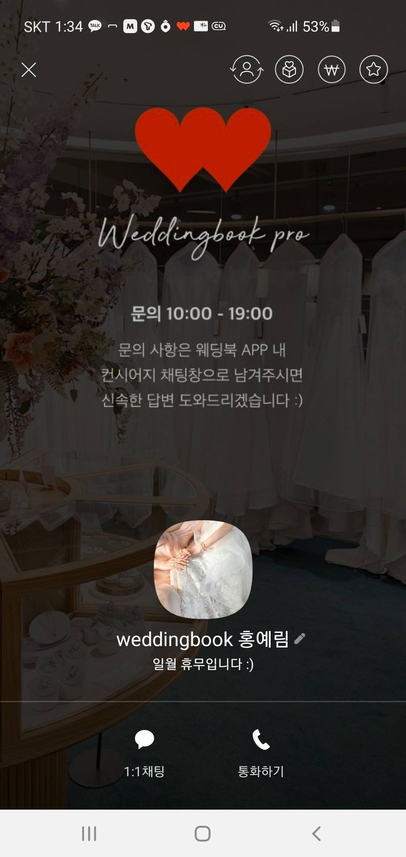 웨딩북 원래 이런식인가요? 이렇게 모든 프로님이 친절하시고 다정하시고 꼼꼼하시고 천사같으신건가요? 저만 그렇다면 전 행운아ㅎㅎㅎㅎㅎ 예림프로님 언제나 스마일로 저를 이끌어주셔 감사합니다 웨딩스승님이세요ㅠㅠ제 일에 깊이 공감해주시고, 고민해주시고 좋은 말씀주셔 감동받았어요 앞으로도 잘 부탁드려요 ㅎㅎ 덕분에 지금까지 잘 달려왔어요 웨딩북 관계자분들 빨리 예림프로님 상주세요 상!!! 웨딩상담 : 추천♥ 전체적인 구성을 아주 친절히, 꼼꼼히 설명해주셨어요. 누구나 낯선 웨딩을 함께 준비할 동반자, 가까운 친구가 생긴거 같아 너무 든든하고 감사했어요ㅠㅠ♡ 스타일링 : 추천♥ 말해뭐해 저의 취향 확실히 파악해주셔 바로 쓱쓱 업체 추천해주셨고 저도 너무 맘에 들었어요 ㅎㅎ 중간에 추가된 요청사항이 있었음에도 너무 스피디하고 완벽하게 도움주셔 늘 감사할 따름입니다...프로님 첵5 분위기 : 추천♥ 항상 차분히, 친절히, 완벽히, 편안하게 소통해주세요...주변 사람들에게 추천하고 다닐거에요ㅋㅋㅋ 단 한번도 강요의 ㄱ자도 느껴본적 없어요...항상 프로님과 소통하다보면 천사로만 느껴져요...레알...천사 프로님 앞으로도 잘부탁드립니다