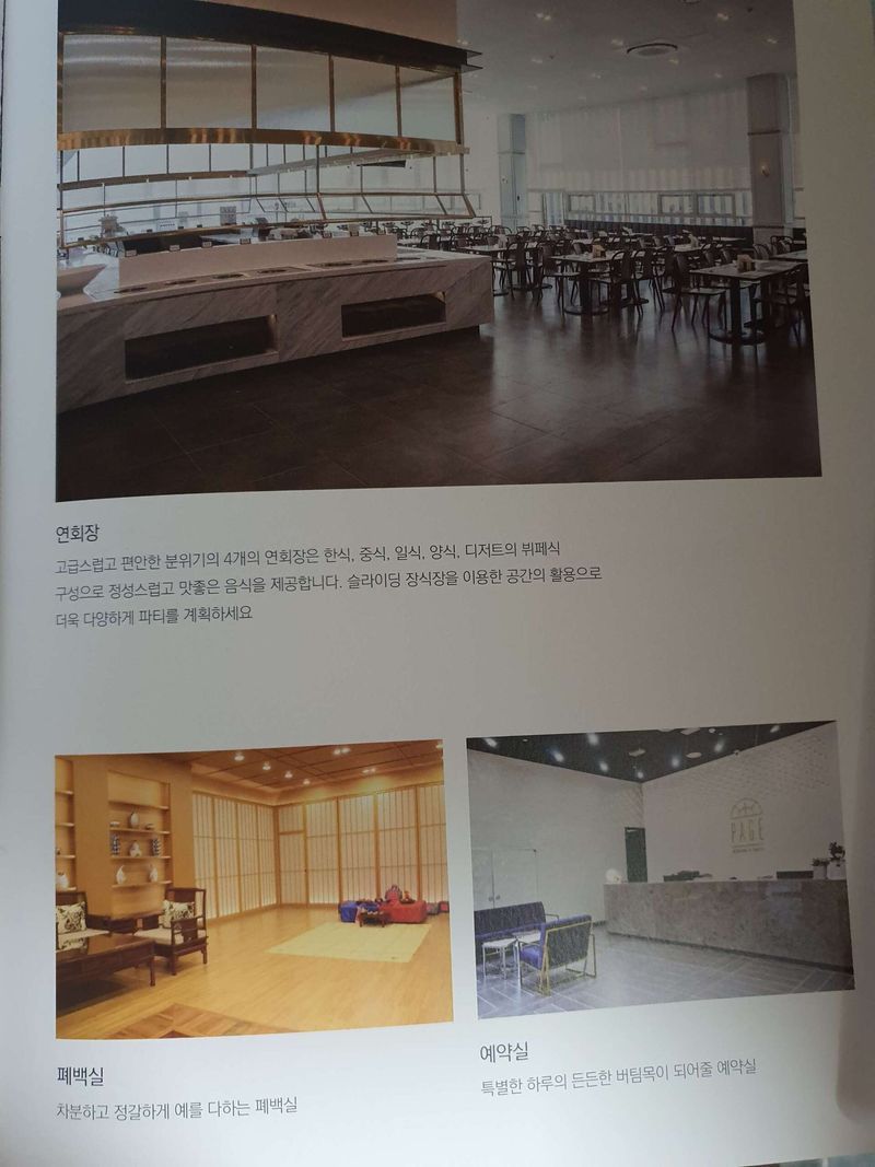본식이 너무 기다려져요. 예식장도 잘 선택한거 같고 양가 부모님께도 보여드렸더니 잘했다고 하셨어요.😊 홀분위기 : 추천♥ 층고도 높고 깔끔하며 동선도 편한거 같아요! 2층은 어두운 홀이며 6층은 2층보다 밝았어요! 폐백실도 넓고 깔끔해서 폐백은 안하기로 했었는데 지금은 고민중이에요 ㅎㅎ 음식 : 추천♥ 지인 결혼식 돌때 가서 먹어봤었는데 항상 만족스러웠어요! 서비스 : 추천♥ 궁금한것도 많아서 이동중에도 계속 질문했었는데 자세히 설명해주셨어요! 저희가 모르는 부분도 잘 설명해주시고 직원분들은 다 친절하세요. 상담 받는동안 즐겁고 행복했습니다.ㅎㅎ