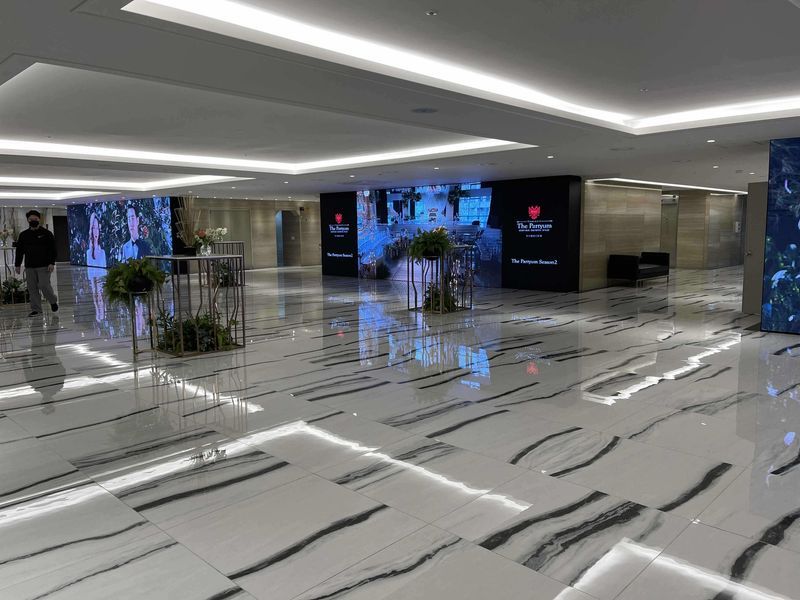 파티움 홀 너무 화려하고 예뻐서 계약했었습니다. 식장 밖에 큰 스크린이 있는데, 일반 영상 쓰기엔 아까워서 따로 웨딩 영상을 제작해 가야겠다 싶어서 영상 구상해볼겸, 저희 계약 예식일이 일요일 첫타임이었는데, 대중교통 타고가면 괜찮은가 확인도 할겸 계약하고 그 다음주 일요일 첫타임에 방문했습니다. 한참 스크린을 보고있었는데 식 끝무렵 쯤 아직 식이 진행중인데, 식장밖의 축의금 받는곳도 다음타임 신랑신부 이름으로 바꾸고 포토 테이블도 다 바꾸고 영상도 다음 타임 신랑신부 영상으로 바뀌더라구요. 코로나 때문에 식장 밖에 스크린 보며 서계시는 하객분들도 많았는데 이렇게 빨리 바꾼다니 이해가 가지 않았고 하객분들과 사진찍을 시간은 있으려나 싶어서 상담해주셨던 분한테 왜 진행중인데도 빨리 바꾸는지 확인해보니까 첫타임은 식 시작 전에 사진찍을 시간이 충분(?)해서 식 시간이 70분이었습니다. 계약당시 저희는 80분으로 안내 받았었고, 80분도 조금 급하게 해야하지 않을까 안그래도 걱정하고있었는데.. 신랑신부 찍어내는 공장 느낌이라 계약 해지 요청했습니다.