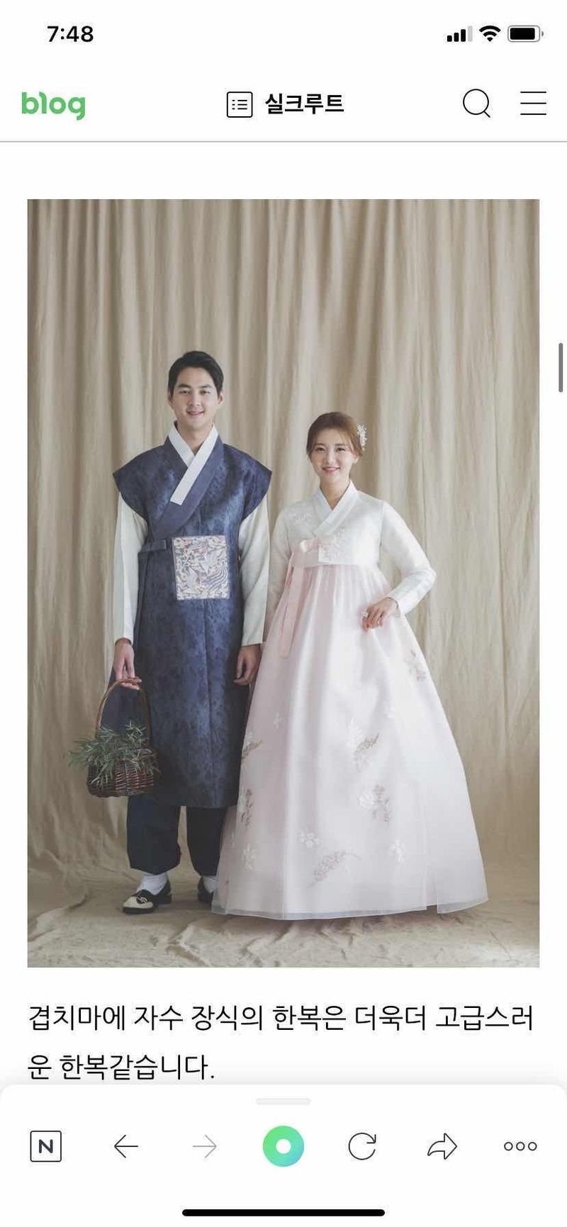 급하게 폐백을 하게되어서 예식날 한번만 입는거라 맞추는게 아까울 것 같아서 대여를 하는쪽으로 진행했어요. 청담 매장에 비해서는 상대적으로 저렴한것 같고 사장님도 이사님도 넘 친절하세요 :) 대여를 하려면 아무래도 매장크기가 커야 종류가 많아서 고르는데 도움이 될 것 같아서 여기서 진행하게 되었어요. 스타일 : 추천♥ 같은층에서 가장 매장이크고 종류도 많아요. 맞춤매장 뒷편에 대여매장이 있어요 사장님이 젊고 친절하세요 품질 : 추천♥ 대여물품이라 현장에 걸려있는 한복들은 살짝 사용감은 있는데 실제 사용하는 당일에는 상태 좋은 한복으로 챙겨주신다 하셨어요. 서비스 : 추천♥ 폐백을 안하려다가 급하게 하게 되는 바람에 대여로 진행하게 되었어요. 서울이 아닌곳에서의 예식이라 한복 배송 관련 해서 제일 걱정이 많았는데 일정관련 설명도 친절하셨고. 많은부분을 배려해주셔서 안심이 되었어요. 장명희 이사님~ 넘 친절하셔요. 한복도 사이즈별로 여러벌 입어볼수 있게 세심하게 배려해주셨어요.