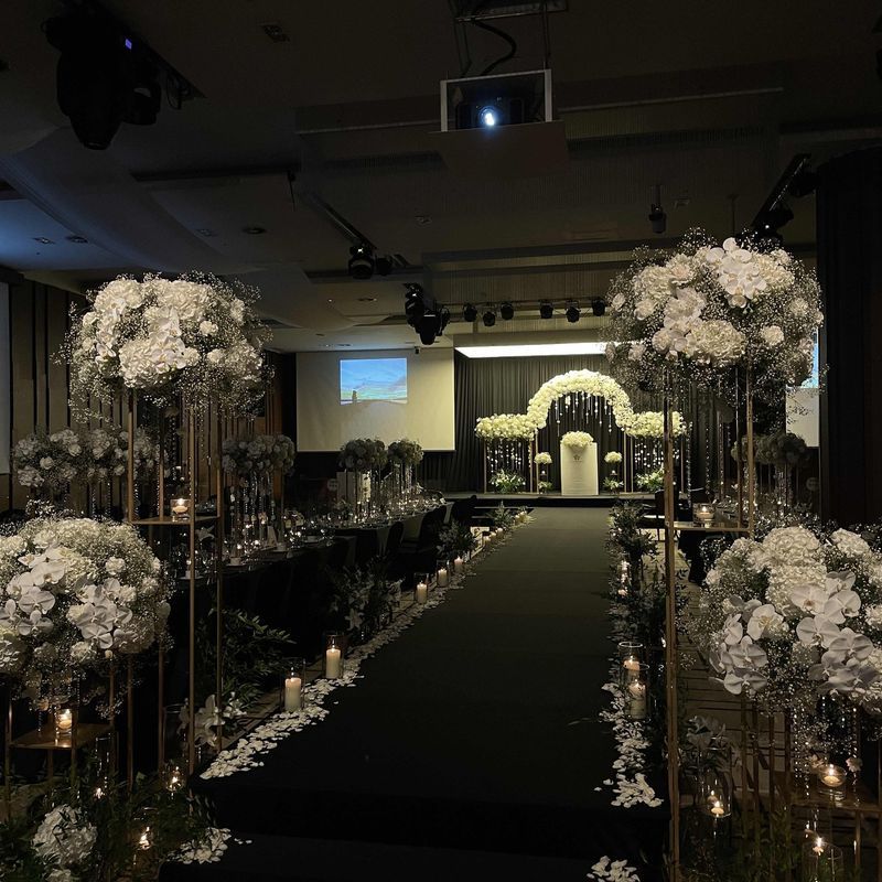 사진보다 실제로 투어했을때 훨씬 좋았고, 정말 합리적인 가격으로 식이 가능하다는 점이 최고입니다. 홀분위기 : 보통♥ 호텔외관 및 로비는 굉장히 깔끔합니다.그에 비해 실제 예식홀은 다소 그런 느낌이 들지않아 아쉬웠습니다.다른 리뷰들과 마찬가지로 기둥은 굉장히 마이너스 요인이였습니다.하지만 셋팅이 완료된 모습은 정말 예뻤습니다.사진으로는 안담기는 분위기라 실제 투어하시면 훨씬 만족스러울것 같습니다. 다소 아쉬운 점은 생화장식은 호텔쪽에 픽스된 컬러가 있어 변경이 힘들다는점이였습니다. 음식 : 추천♥ 시식은 못해봤지만 사진만으로도 구성이나 가격면으로 굉장히 만족스러웠습니다. 서비스 : 추천♥ 지배인님 정말 친절합니다. 추가 질문같은 경우에도 명확하게 설명해주셔서 좋았고 직원분들이 세팅 진행중일때 투어해주셨는데 상담이 끝나고도 추가로 세팅이 완료됐다며 보여주셔서 감사했습니다.
