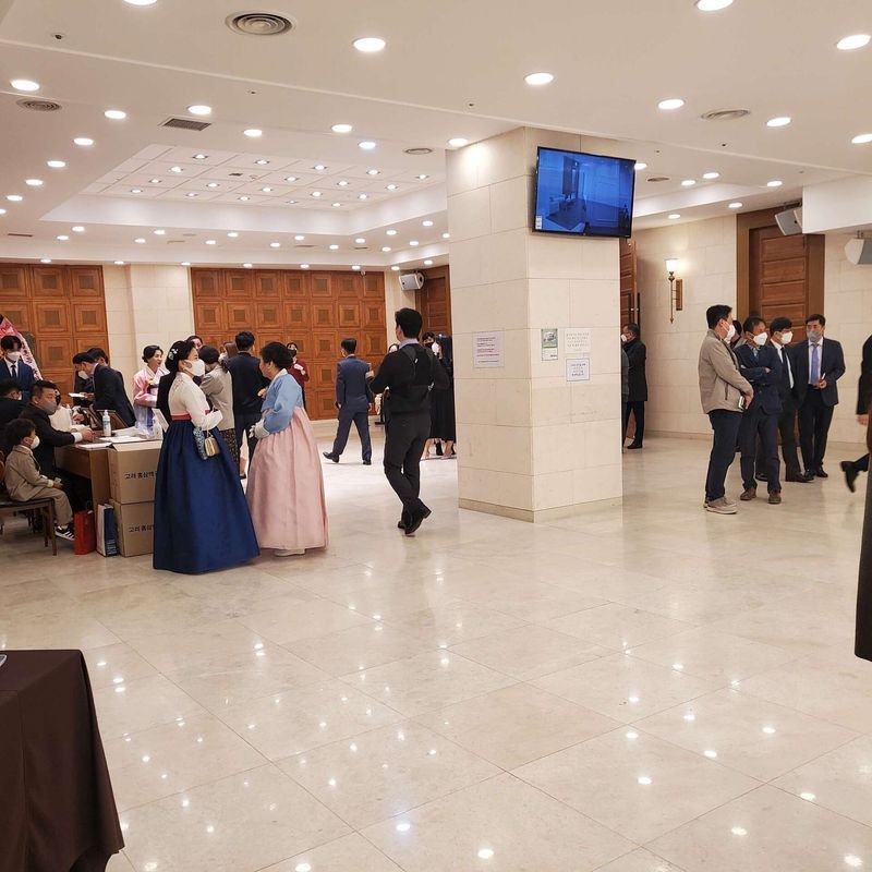 로비가 넓어 좋았어요. 동선도 복잡하지 않아 좋았고 예식장이 250명 넘으면 부담스러울 거 같긴합니다. 접근성과 주차 등 너무 좋아요. 150~200명 식은 딱인거 같네요 홀분위기 : 추천♥ 예식장은 생각 보다 작아서 지금 거리두기가 적용되는 99명~ 150명이 복잡하지않게 적당할 거 같아요 내부 인태리어는 심플하고 한층에 모두 있어 동선 좋고 로비 및 연회장은 넓어서 넘 좋았어요 주차도 아주 만족, 접근성 굳! 가격도 조율이 잘되고 다양한 프로모션이있어 좋아요 음식 : 추천♥ 음식음 먹어보지는 않았지만 종류도 다양했고 예랑이는 외관으로 퀄리티도 나쁘지 않다고 하네요 서비스 : 추천♥ 안내 해주시는 분 너무 친절하셔서 좋았어요