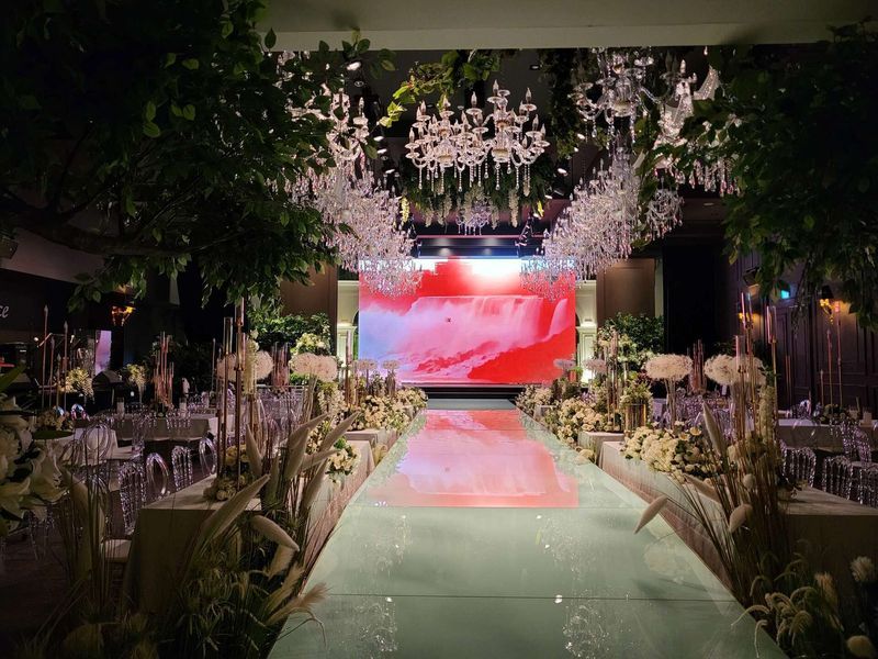마지막 투어 일정으로 본예식일정이 다끝난 상태라 저희밖에 없어서 조명과 버진로드를 직접 보여주시면서 설명해주셨어요 버진로드 계단식이 아닌게 마음에들었고 중간에 가면 그 유명한 프로포즈존 리프트가 움직이면서 올라왔어요 앞에보이는 전광판은 양쪽으로 갈라지면 문처럼 열려서 더이쁜 공간이나오는데 그곳에도 신랑이나 양가어머님등 깜짝이벤트처럼 등장신으로 사용가능하대요 요즘 주례없는 결혼식 많이 하니까 주례대는 아래로 내려져있는데 필요시 올라와요 천장엔 플라워샤워 설치되어 있고 따로 비용추가 없이 기본 옵션으로 뿌려준다고 하네요~ (다른곳은 비용받는데 서비스로 주는것처럼 생색내는곳도 있어요 실제로 추가비용 받는곳도 있음) 사진엔 잘 안보이지만 왼쪽엔 재즈공연 가능한 공간이 있습니다 홀분위기 : 보통♥ 홀은 가든분위기 화사하고 이뻤어요! 역시 사진보다 직접 눈으로 보는게 다르네요 지금까지 어두운홀 위주로 찾아서 보다가 라페니체홀 보고 흔들렸어요 이벤트 연출 요소가 많이 가능하기도 하고 내가 하객입장으로 왔다고 상상했을때도 기억에 많이 남을거같은 홀이였어요 하지만 신부대기실은 제스타일이 아니였어요 그래서 계약을 포기했습니다.. 그리도 또하나 단점이자 장점은 아울렛 복합상가라 복잡할듯 하지만 한층을 다 사용하기에 도착만 하면 동선이 편합니다 음식 : 보통♥ 투어 제일 마지막 일정이라 하객들도 다빠지고 정리중이라 음식상태는 확인못했지만 연회장 입구도 이뻤어요 혼주룸 별도 있습니다 중요하게 생각하시는 분들은 참고하시면 될거같아요 서비스 : 보통♥ 저희는 예정 예식일 시간까지 정해놓고 가서 상담시 빠르게 진행할수 있었고 원하는 타임은 다행히 있었어요 비용도 어느정도 예상가격 이였습니다 서비스는 다른 투어한곳 보다는 적은편이였지만 큰차이는 없었어요 비록 계약은 안했지만 마지막 투어 일정이다보니 다음날까지 시간을 줄테니 당일예약 서비스까지 챙겨주신다고 좀더 생각할 시간을 주셔서 배려에 감사했습니다~!