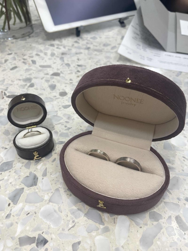 백화점 유명 반지를 정말 많이 보았지만 높은 가격대비 마음에 드는 디자인을 발견하기가 어려웠어요 그러던중 지인의 추천으로 누니주얼리를 방문하게 되었습니다! 다른 디자이너샵들도 방문해보았지만 결국 맨처음 방문하였던 누니로 다시 돌아갔어요 :) 디자인 하나하나 너무다 아름답고 고급스러워서 웨딩밴드를 고를때도 가드링을 고를때도 정말 너무나 어려웠습니다 ㅠㅠ 하지만 디자이너 선생님께서 차근차근히 비교해주시고 보여주셔서 결정장애인 저도 기분좋게 고를 수 있었습니다 그리고 파워웜톤인 저에게 정말 딱 맞는 샴페인골드 색상!!! 혹시 저처럼 피부색이 어두워서 고민인 예신분들이 계신다면 저는 적극 추천드립니다 처음 상담받았을 때 그대로 끝까지 친절하게 응대해주신 부분도 너무 좋았구요 반지 호수를 결정할때 측정기구를 따로 챙겨주신 부분도 너무 감사합니다 혹시 추후에 붓거나 할때를 대비하라고 하시더라구요 이런 부분까지 챙겨주시다니..정말 섬세하세요 그리고 한남본점 쇼룸으로 가시면 각인서비스와 히든스톤을 무료로 해주십니다 저희는 무려 히든스톤으로 다이아몬드가 있어요 세상 어디에도 없는 저희만의 아름다운 반지가 탄생한것 같아 너무나 만족스럽습니다! :) 디자인 : 추천♥ 디자인도 너무 다양하고 각 디자인마다 그냥 단순 카피 제품과는 다른 정성스러움이 묻어났어요! 심플하면서도 고급스럽고 모던하면서도 흔하지않은 디자이너의 고민이 그대로 담긴 아름다운 디자인들입니다! 저는 그중 like a tree 디자인을 선택했습니다 8까지 색깔중 파워웜톤인 저에게 딱 맞는 샴페인 골드와 예랑이는 은은한 그레이빛이 도는 남성스러운 색을 선택했어요 :) 품질 : 추천♥ 백화점 유명 브랜드 반지를 모두 보고 착용해보았지만 여기만큼 부드럽고 착 감긴다는 느낌의 웨딩밴드는 없었던것 같아요! 제작기간 2달이 소요된 만큼 정말 정성스럽게 만들어주신 느낌입니다 서비스 : 추천♥ 맨 처음 상담 예약을 했을때 사실 저희는 누니주얼리를 처음으로 가고 그다음 다른 샵들을 둘러보았는데요 전혀 재촉하시지 않고 충분히 둘러보고 선택하시라며 정말 많이 배려해주셨어요! 저희가 최종 선택후에 늦은 오후가 되서 다시 돌아갔을 때도 김수현 디자이너분께서 너무 밝고 친절하게 맞이해주셔서 기분이 좋았어요! 상담시 잠깐씩 기다리는 타임에도 계속 신경써주시고 매장안에 향기가 나는것도 상담을 오는 사람들에게 소소하지만 큰 배려라고 생각했습니다! 저희가 9월에 방문하고 11월 웨딩촬영이라 사실 시간이 조금 촉박해서 제가 몇번 문자를 보내드렸었는데 그때마다 한번도 귀찮아 하지 않으시고 제작정도를 알려주셔서 마음을 놓을 수 있었습니다! :)