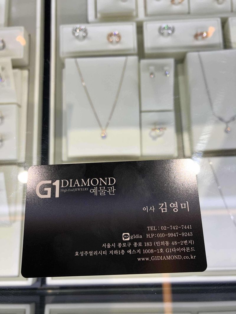 결혼 예물 반지 알아보다가 g1다이아몬드 괜찮다는 후기 보고 효성쥬얼리시티점으로 예약하고 방문했어요. 건물내 지하주차장에 주차하면 되서 편리했고 매장 내부도 깔끔하고 여러팀이 있어도 불편하지 않게 상담 받을 수 있게 넓찍하더라구요 ㅎㅎ 보통은 웨딩밴드 신랑이랑 하나씩하고 다이아반지 추가로 하던데 저희는 커플링 기존에 가지고 있는게 있어서 따로 웨딩밴드를 같이 안맞추고 제 다이아반지 하나, 신랑 반지 하나 이렇게만 맞췄어요. 5부다이아 깔끔한 스타일로 했고 신랑은 1부 다이아 들어간 반지로 했는데 세트 느낌나게 잘 한거 같아요. 종로라 그런지 확실히 견적도 괜찮았구요. 선물로 진주 귀걸이 목걸이 세트랑 양가 혼주 진주 귀찌도 챙겨주셨네요. 웨딩촬영이 얼마 안남았는데 최대한 날짜 맞춰주시려고 한 점도 좋았습니다. 개인적으로 다이아반지 프로포즈링에 대한 로망이 있었는데 합리적인 가격에 잘 맞춘거 같아서 좋아요ㅎㅎㅎ 디자인 : 추천♥ 다양한 디자인이 있고 많이 껴볼수 있어요 품질 : 추천♥ 가격 합리적이고 gia,우신보증 있었어요 서비스 : 추천♥ 진주세트,혼주브로치나 귀찌 서비스로 제공해줬어요