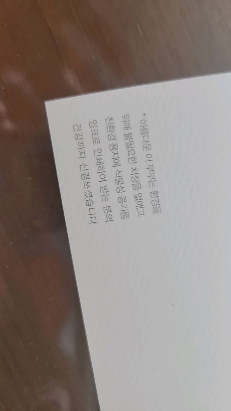 샘플신청은 배송료 유료이지만 에코복권으로 배송료도 무료인 셈이고 무엇보다 청첩장 샘플로 쓰레기 만드는것도 싫었고 사실 청첩장 받으시는분들도 대다수 오래지않아 쓰레기통으로 가는거 생각하면 환경을 생각하여 재생지 사용하고 의미있는 청첩장을 구매하고 싶어서 주문하게 되었습니다. 중간에 그냥 저렴한 다른 청첩장을 주문할까 고민도 했지만 결국 여기서 했고 결론적으로는 흔하지않은 저희만의 유일한 청첩장을 만들수있어서 좋았고 만족합니다 봉투 안쪽 그림은 다들 예쁘다고 좋아해주었네요 환경 생각하시고 흔하지않은 청첩장 생각하신다면 리프프로젝트 적극 추천드립니다!! 디자인 : 추천♥ 디자인이 아주 많지는 않아서 오히려 저는 보기 편했고 마음에 드는 거 고른 뒤에는 여러번 시안 수정 요청을 통해 디자인도 새로 조합도 하고 하나밖에 없는 청첩장을 만들 수 있어서 좋았어요 내부도 올컬러여서 예뻐요 가격 : 추천♥ 내지는 주문 수량보다 더 많이 충분히 왔고 리프프로젝트를 찾는 분들이 생각하는 자연친화적 기부 프로젝트로 의미도 좋고 청첩장 종이 재질도 조금 빳빳했지만 좋고 봉투는 얇긴했어요 서비스 : 추천♥ 전화로 문의드릴때도 잘 설명해주시고 시안 수정도 인터넷으로 쉽게 할 수 있어서 좋았습니다