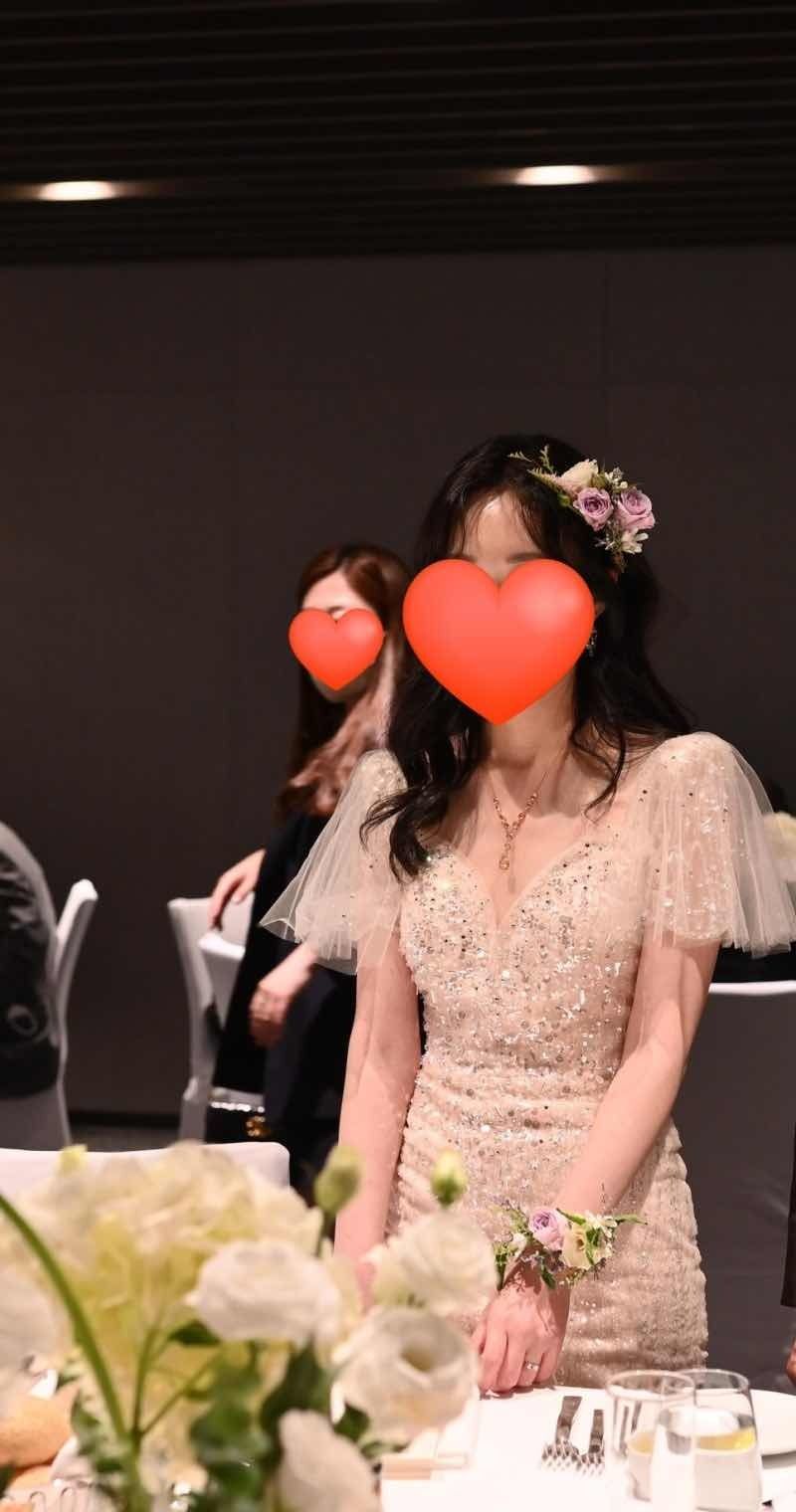 2부 때 생화헤어핀과 팔찌 착용했는데 에프터 드레스와도 예쁘게 잘 어울렸고 1부 때 헤어밴드보다 더 예뻤던거 같아요. 부케 : 추천♥ 저는 부케 다신 연보라톤 생화팔찌&생화헤어핀을 주문했습니다. 후기가 좋아서 선택했어요~ 가격 : 추천♥ 10만원으로 생화헤어핀&생화팔찌 주문했는데요~ 머리와 팔 모양에 딱 맞게 제작해주셔서 예쁘게 잘 착용했습니다. 서비스 : 추천♥ 카톡 상담 시 부케를 생화헤어핀&팔찌로 변경해주셔서 감사했어요. 웨딩 5일 전에 확인 문자 보내주시고 꼼꼼하게 잘 챙겨주셨습니다.