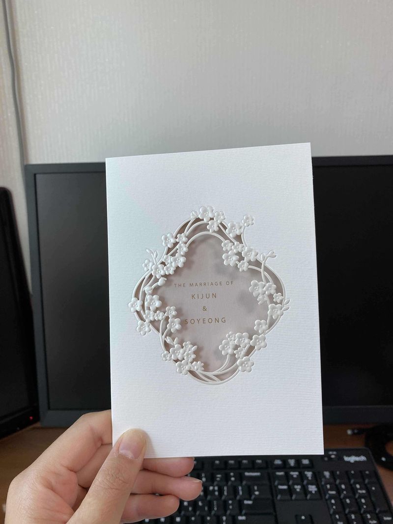 샘플 10개 받아보고 고민하다가 잘 선택했습니다:) 적절하게 가성비있게 한 것 같아요! 디자인 : 추천♥ 꽃이 입체적으로 들어가있는 레이저컷팅 스타일의 청첩장이 가장 깔끔하고 예뻤어요:) 청첩장은 바른손이 제일 간편하다고 해서 했는데 대만족이에요! 가격 : 추천♥ 가격대비 종이 재질도 좋고 너무 만족했어요! 웨딩북 할인까지 받아서 가성비있게 잘 했습니다 ㅎㅎ 서비스 : 보통♥ 몇번 수정사항이 있어서 접수했는데 특정 시간(오후1시?)까지만 제출하면 그날안에 수정이 되고, 아니면 다음날까지 기다려야 해요ㅠㅠ 그래도 대부분 잘 수정해서 사용했어요.