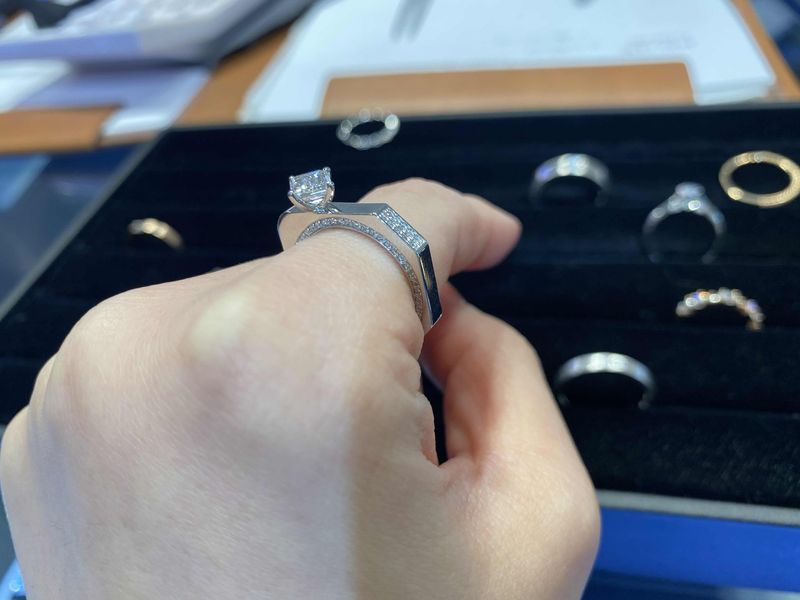 다이아몬드가 너무 돋보이는 디자인이죠? 너무 마음에 들었어요 원래 할려고 마음먹고 간거라 그런지 더 마음에 들더라구요 !! 중간에 반지 나오면 체크하라고 하던데 체크하면 또 얼마나 예쁠지 너무 기대되요!! 얼른나왔으면:)!!! 디자인 : 추천♥ 예물 디자인이 단 하나밖에 없는걸 원했는데 딱 맞게 해주셨고 특이해서 너무 좋아요! 품질 : 추천♥ 품질은 딱 봐도 반짝이면서 가격도 거품없이 소개해주셔서 너무 감사했어요 서비스 : 추천♥ 직원분들이 너무 친절했고 모르는 부분을 하나하나 설명해주셔서 너무 좋았어요