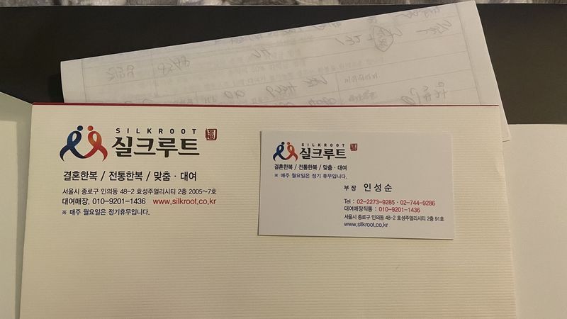 크리스마스날 엄마와 실크루트에 상담예약을 하고 방문했습니다. 사람이 없는 날이라 인부장님께서 저희를 집중적으로 상담해주셨고 잘 이끌어주셔서 계약까지 하게 되었습니다! 스타일 : 추천♥ 사람들이 많이 방문하고 많은 후기를 남길 만큼 대중적이고 파스텔톤의 은은한 스타일이었습니다! 품질 : 추천♥ 대여한복이지만 깔끔한 편이고 품질이 괜찮아보였습니다! 서비스 : 추천♥ 저희에게 집중해서 상담해주셨고 아주아주 친절하게 대해주셨습니다! TIP : 사람들이 없을 만한 시간에 방문하면 아무래도 더 좋은 상담을 받을 수 있고 더 좋은 서비스를 받을 수 있습니다.