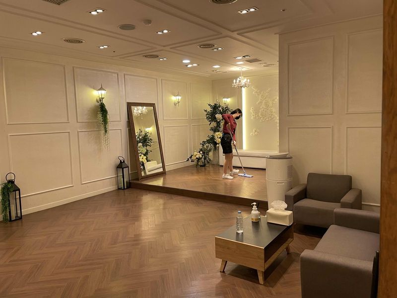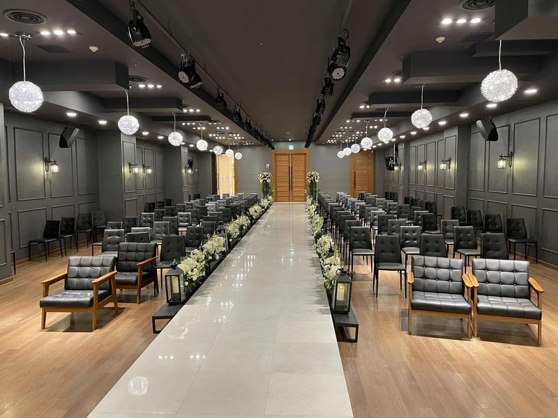 가성비 웨딩홀이 맞는 것 같아요! 그리고 단독홀이다보니 동선이 쉽고, 한층에서 해결이 가 가능해서 좋았습니다! 그리고 음식도 투어때 냄새가 너무 좋아서 배고파젔었어오 ㅎㅎ 외부에서 찾아오시는 입구도 찾기 쉬웠구요, 주차도 생각한 것 보다는 넉넉했어요, 최종적으로 선택하진 못햇지만 서비스나 가격적으로 메리트 잇었습니다! 홀분위기 : 보통♥ 웨딩홀은 예뻣어요! 약간 어둡고 은은한 분위기 좋아하시면 추천해요, 그리고 조명 컨트롤을 신부신랑 동선에 맞춰서 시연도 해주셔서 분위기를 알기 좋았습니다. 다만, 다른 웨딩홀에 비해 조금 오래된 느낌이 납니다! 음식 : 보통♥ 먹어보진 못했지만 바로바로 만들어주셔서 신선해보였어요! 서비스 : 추천♥ 상담해주시는 매니저님 너무 친절하셨어요, 다양하게 견적도 내주시고, 최대한 맞춰서 해주시려고 하셨습니다. 그리고 마지막까지 문자도 보내주시고 감사했어요!