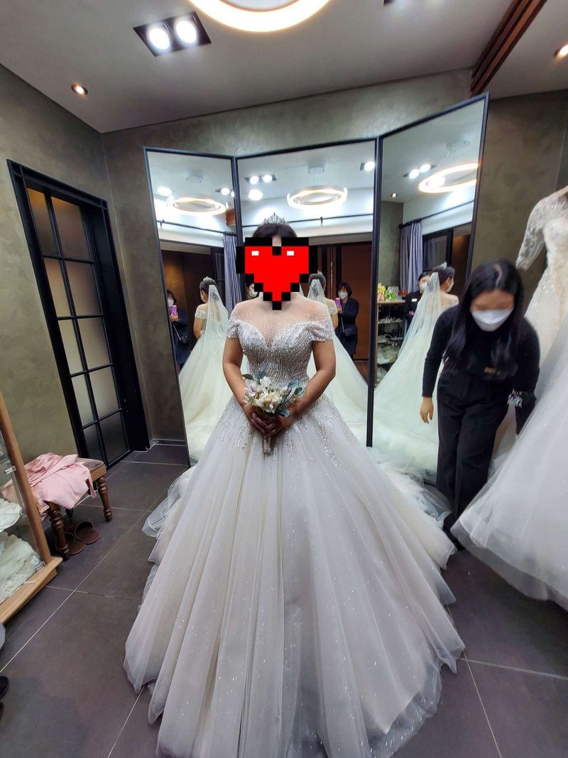 드레스 예쁘고 직원분들 친절하셨어요~! 스타일 : 추천♥ a라인 비즈드레스 위주로 봤는데 괜찮았어요~ 근데 여름에 드레스 입어볼 때는 좀 더웠어요ㅋㅋ 옷상태 : 추천♥ 드레스 상태도 괜찮아 보였어요 페티코트도 여러 종류 있고요. 추가금 20만원 지불하고 사진 속 드레스 선택했어요. 서비스 : 추천♥ 피팅직원분 실장님 모두 친절하셨어요~! 마스크 못벗는건 아쉬웠지만 베일이나 악세사리도 이것저것 다양하게 보여주셨고 악세사리, 구두까지 빌려주세요.