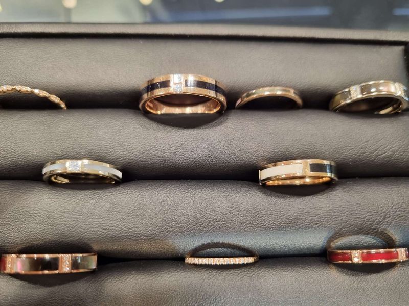 사진이 실물을 따라가지 못하네요 ㅠㅠ 제가 사진기술이없어서;; 가드링껴도 안껴도 이쁘고 자개 반지라 색상을 반반씩 했너니 옷에따라 돌려끼면되서 좋더라구요~ 친절하시고 웨딩북 캐시백도 되니까 꼭 가보세요 이쁜반지 많아요~ 디자인 : 추천♥ 자개 반지로 마음 정해서 간거였고 실제로 보니 더 이뻤습니다~ 자개 반지 말고도 다른 디자인 반지도 이쁜게 많았어요~ 품질 : 추천♥ 마침~!! 자개 반지 디자인 하셨던분이 상담을 해주셔서 반지스토리도 듣고 세심하게 디테일하게 손가락사이즈 부터 색상까지 전반적으로 잘봐주셨어요~ 서비스 : 추천♥ 친절하고 혜택도 좋았습니다~ 자개함에 브로치와 귀걸이도 받았어요 고급스럽고 이쁘네요~