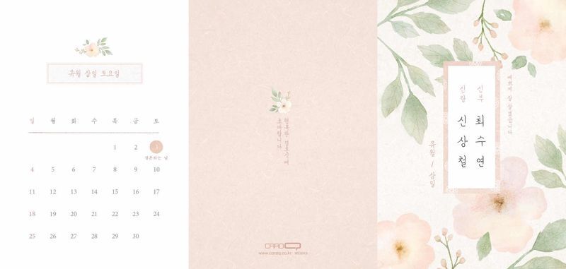 제가 가장중요하게 생각했던 부분을 충분히 채워준 카드큐 청첩장 입니당 😘 디자인 : 추천♥ 디자인도 고급스럽고, 용지도 특수지로 두껍고 좋았어요!! 가격 : 추천♥ 400매 주문했고, 샘플후기로 쿠폰 3만원 받아서 적용해서 주문했구요! 받자마자 감탄했어요 두껍고 튼튼하더라구요 서비스 : 추천♥ 제가 시안번복을 좀했는데 그때마다 시안수정되었고 메세지로 오고 예쁘고 꼼꼼하게 시안수정해주셨어요 TIP : 포켓청첩장 따로 구매할예정이었는데 기본서비스에 들어있어서 주문했어요! 저같은 생각 있으신분은 카드큐 이용하셔도 좋을거같아요