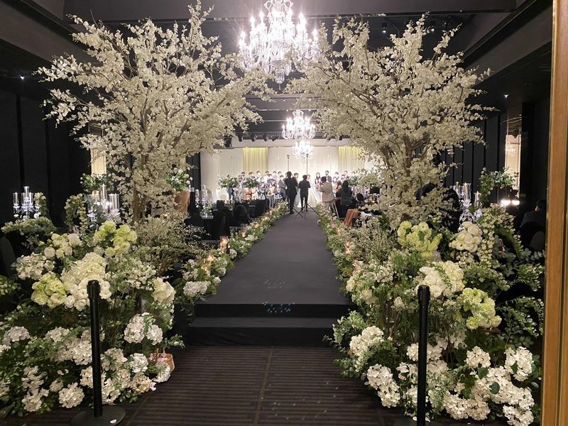 저희가 제일 중요시한건 교통인데 주차가 한정적이다보니 번거로웠어요. 셔틀버스도 운행하는데 안내하시는 분이 있다고 해도 길건너 버스타고 길건너에서 내려서 홀로 와야 된다는게 복잡하드라구요! 주차랑 날짜 문제만 없었으면 아마 계약했을것 같아요! 홀분위기 : 추천♥ 웨딩홀이 제가 좋아하는 어두운 홀이에요! 음식 : 추천♥ 130가지 뷔페라고 하는데 깔끔해보이고 맛있어 보였어요! 5층 피로연장보다는 4층 피로연장이 더 예쁘고 깔끔해요! 서비스 : 추천♥ 직원분들 모두 친절하세요! 설명도 자세하구요!